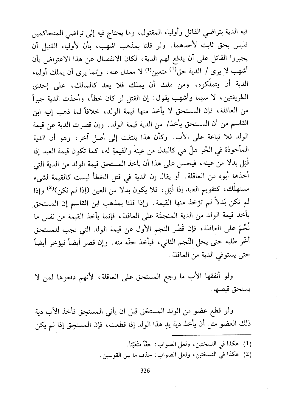 فيه الدية بتراضي القاتل وأولياء المقتول، وما يحتاج فيه إلى تراضي المتحاكمين فليس بحق ثابت لأحدهما. ولو قلنا بمذهب اشهب، بأن لأولياء القتيل أن يجبروا القاتل على أن يدفع لهم الدية، لكان الانفصال عن هذا الاعتراض بأن أشهب لا يرى الدية حق (¬1) متعين (1) لا معدل عنه، وإنما يرى أن يملك أولياء الدية أن يتملّكوه، ومن ملك أن يملك فلا يعد كالمالك، على إحدى الطريقتين، لا سيما وأشهب يقول: إن القتل لو كان خطأ، وأخذت الدية جبرًا من العاقلة، فإن المستحق لا يأخذ منها قيمة الولد، خلافًا لما ذهب إليه ابن القاسم من أن المستحق يأخذ من الدية قيمة الولد. وإن قصرت الدية عن قيمة الولد فلا تباعة على الأب. وكأن هذا يلتفت إلى أصل آخر، وهو أن الدية المأخوذة في الحُر هلْ هي كالبدل من عينة والقيمة له، كما تكون قيمة العبد إذا قُتِل بدلا من عينه، فيحسن على هذا أن يأخذ المستحق قيمة الولد من الدية التي أخذها أبوه من العاقلة. أو يقال إن الدية في قتل الخطأ ليست كالقيمة لشيء مستهلّك، كتقويم العبد إذا قُتِل، فلا يكون بدلا من العين (إذا لم نكن) (¬2) وإذا لم تكن بَدلًا لم تؤخذ منها القيمة. وإذا قلنا بمذهب ابن القاسم إن المستحق يأخذ قيمة الولد من الدية المنجَّمة على العاقلة، فإنما يأخذ القيمة من نفس ما نُجِّمّ على العاقلة، فإن قَصُر النجم الأول عن قيمة الولد التي تجب للمستحق أخّر طلبه حتى يحل النّجم الثاني، فيأخذ حقّه منه. وإن قصر أيضًا فيؤخر أيضًا حتى يستوفي الدية من العاقلة. ولو أنفقها الأب ما رجع المستحق على العاقلة, لأنهم دفعوها لمن لا يستحق قبضها.