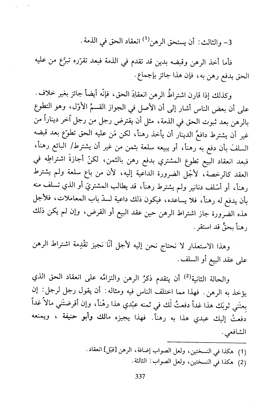 (¬1) هكذا في النسختين، ولعل الصواب إضافة، الرهن [قبْل] انعقاد.