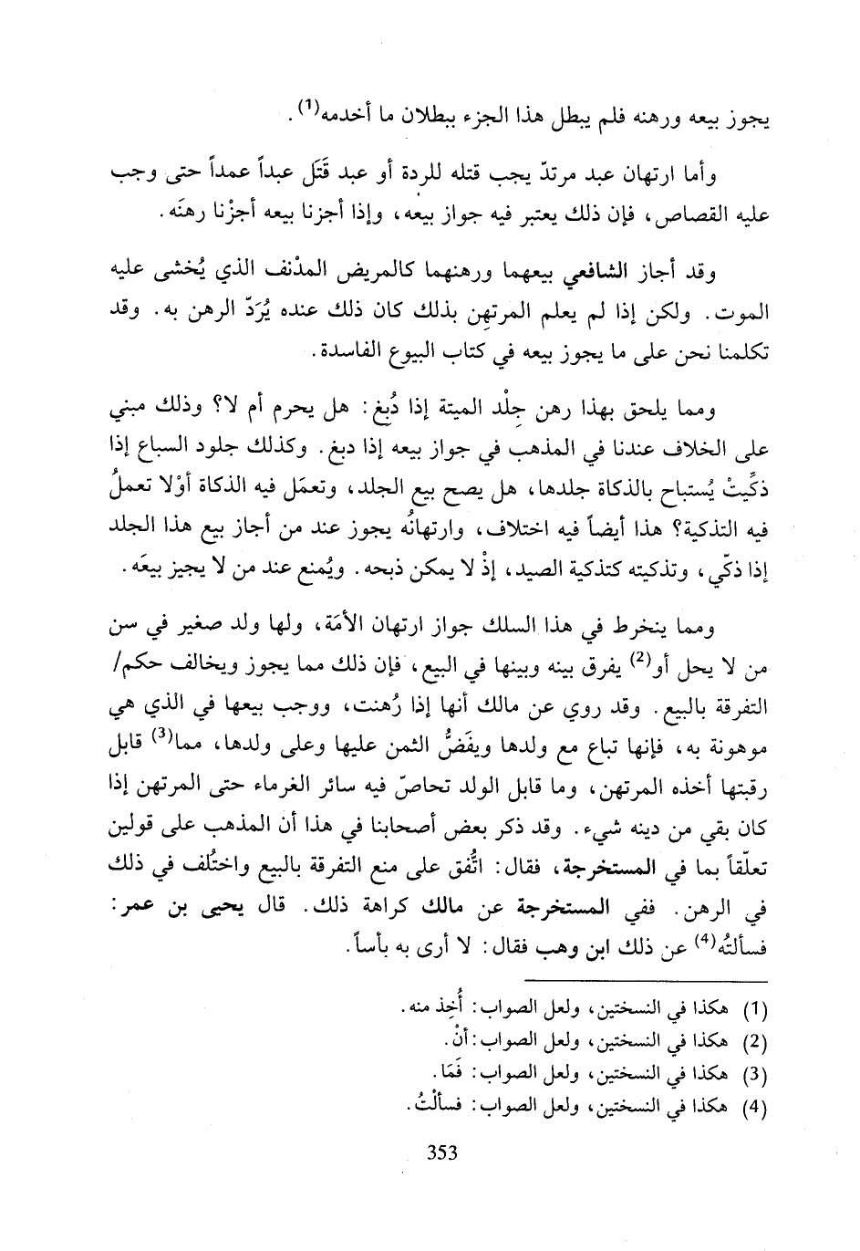 وقد أجاز الشافعي بيعهما ورهنهما كالمريض المدْنف الذي يُخشى عليه الموت. ولكن إذا لم يعلم المرتهِن بذلك كان ذلك عنده يُرَدْ الرهن به. وقد تكلمنا نحن على ما يجوز بيعه في كتاب البيوع الفاسدة.