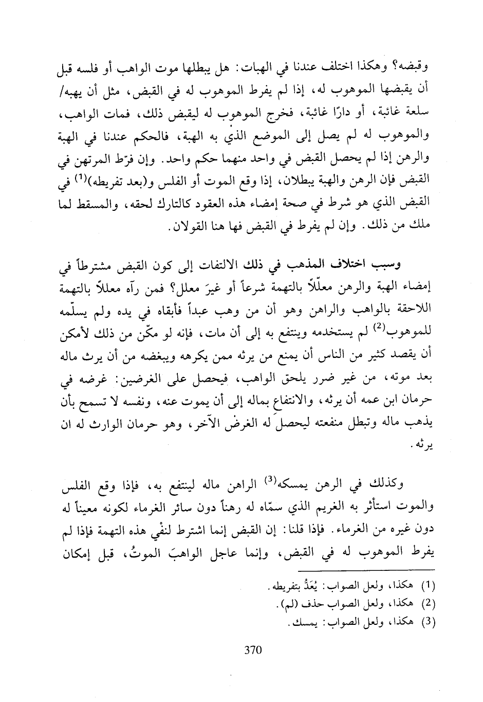 وسبب اختلاف المذهب في ذلك الالتفات إلى كون القبض مشترطًا في إمضاء الهبة والرهن معلّلًا بالتهمة شرعًا أو غيرَ معلل؟ فمن رآه معللًا بالتهمة اللاحقة بالواهب والراهن وهو أن من وهب عبدًا فأبقاه في يده ولم يسلّمه للموهوب (¬2) لم يستخدمه وينتفع به إلى أن مات، فإنه لو مكّن من ذلك لأمكن أن يقصد كثير من الناس أن يمنع من يرثه ممن يكرهه ويبغضه من أن يرث ماله بعد موته، من غير ضرر يلحق الواهب، فيحصل على الغرضين: غرضه في حرمان ابن عمه أن يرثه، والانتفاع بماله إلى أن يموت عنه، ونفسه لا تسمح بأن يذهب ماله وتبطل منفعته ليحصلَ له الغرض الآخر، وهو حرمان الوارث له ان يرثه.