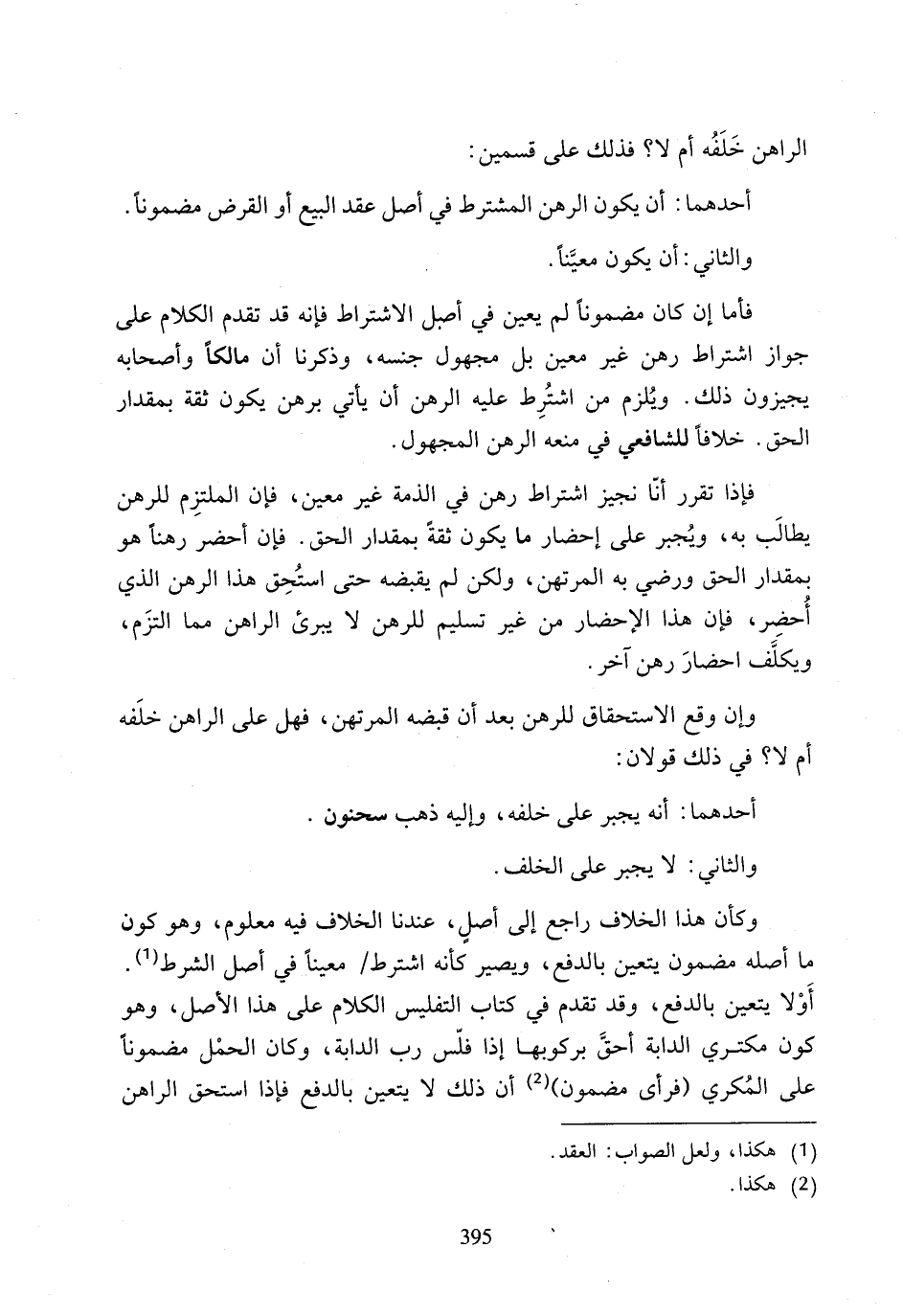 أحدهما: أن يكون الرهن المشترط في أصل عقد البيع أو القرض مضمونًا.