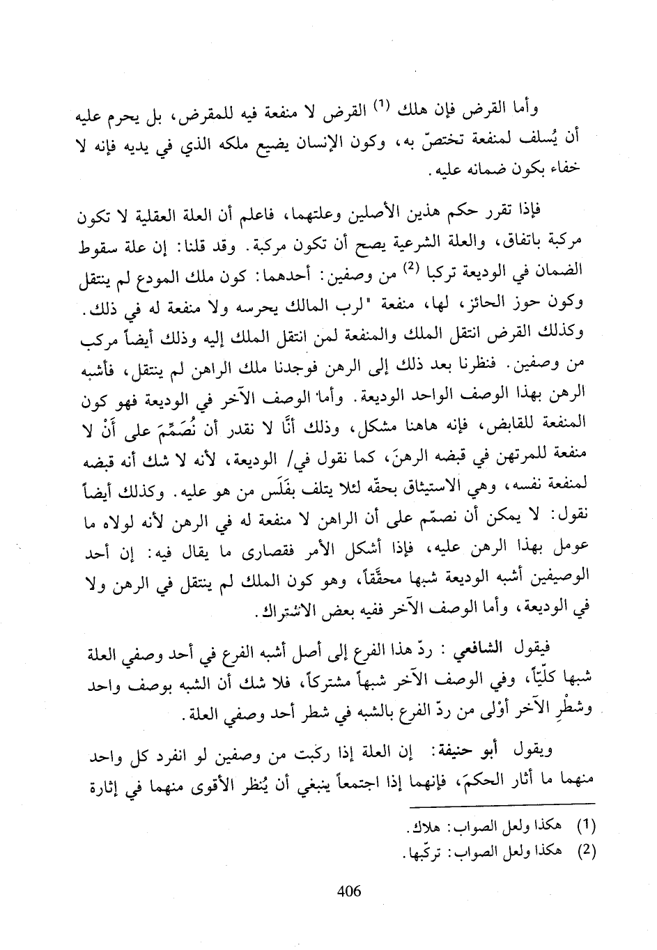 وكذلك القرض انتقل الملك والمنفعة لمن انتقل الملك إليه وذلك أيضًا مركب من وصفين. فنظرنا بعد ذلك إلى الرهن فوجدنا ملك الراهن ولم ينتقل، فأشبه الرهن بهذا الوصف الواحد الوديعة. وأماْ الوصف الآخر في الوديعة فهو كون المنفعة للقابض، فإنه ها هنا مشكل، وذلك أنَّا لا نقدر أن نُصَمِّمَ على أَنْ لا منفعة للمرتهن في قبضه الرهنَ، كما نقول في الوديعة, لأنه لا شك أنه قبضه لمنفعة نفسه، وهي الاستيثاق بحقه لئلا يتلف بفَلَس من هو عليه. وكذلك أيضًا نقول: لا يمكن أن نصمّم على أن الراهق لا منفعة له في الرهن لأنه لولاه ما عومل بهذا الرهن عليه، فإذا أشكل الأمر فقصارى ما يقال فيه: إن أحد الوصيفين أشبه الوديعة شبها محقَّقًا، وهو كون الملك لم ينتقل في الرهن ولا في الوديعة، وأما الوصف الآخر ففيه بعض الاشتراك.