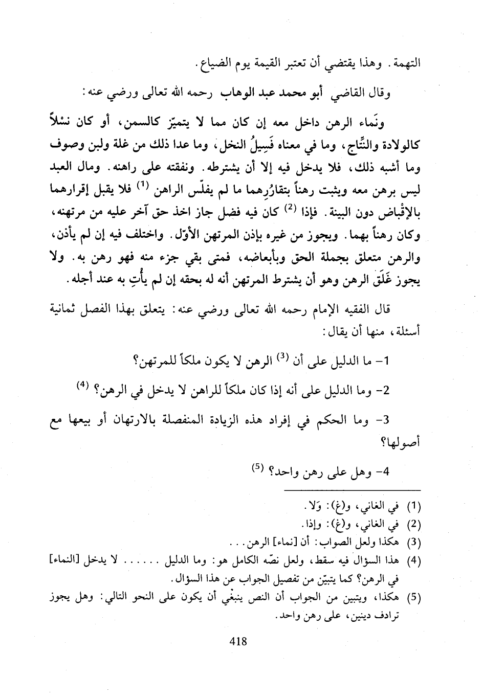 (¬5) هكذا، ويتبين من الجواب أن النص ينبغي أن يكون على النحو التالي: وهل يجوز ترادف دينين، على رهن واحد.