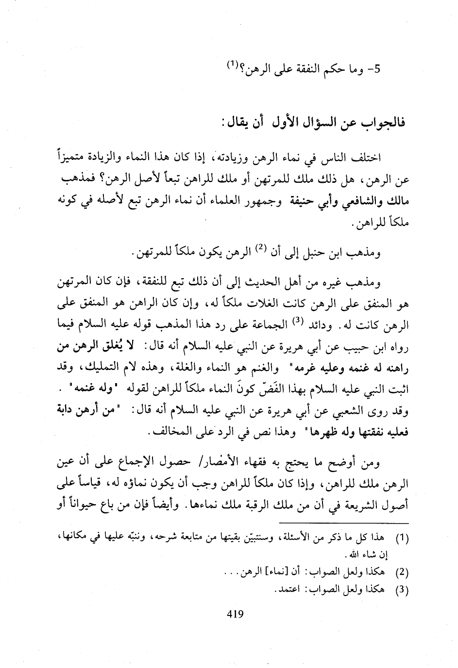 (¬2) هكذا ولعل الصواب: أن [نماء] الرهن ...