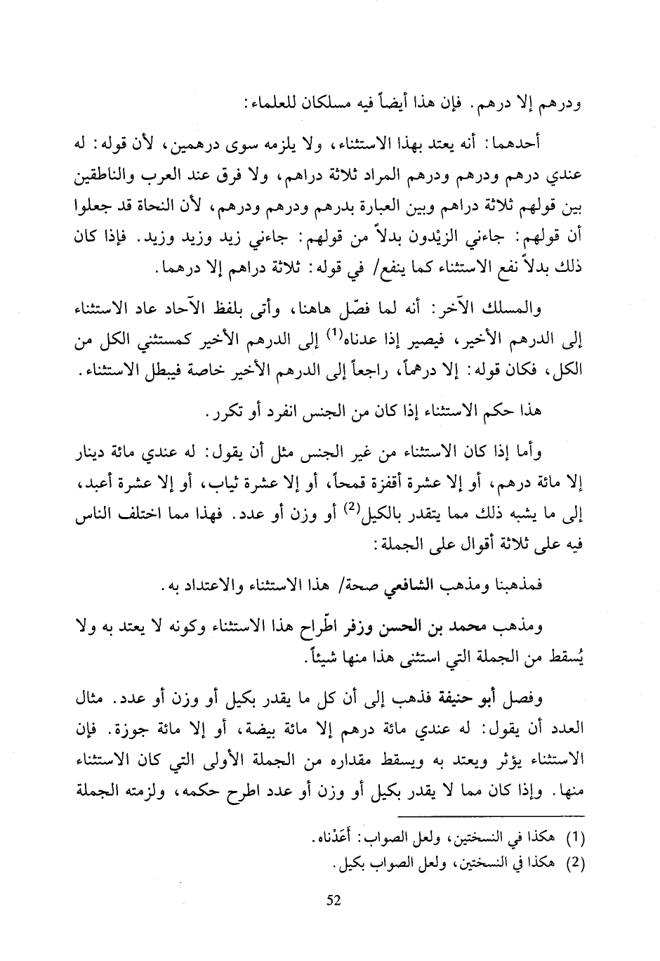 ومذهب محمَّد بن الحسن وزفر اطّراح هذا الاستثناء وكونه لا يعتد به ولا يُسقط من الجملة التي استثنى هذا منها شيئًا.