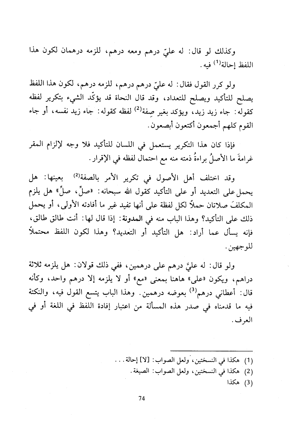 فإذا كان هذا التكرير يستعمل في اللسان للتأكيد فلا وجه لإلزام المقر غرامةَ ما الأصلُ براءةُ ذمته منه مع احتمال لفظه في الإقرار.