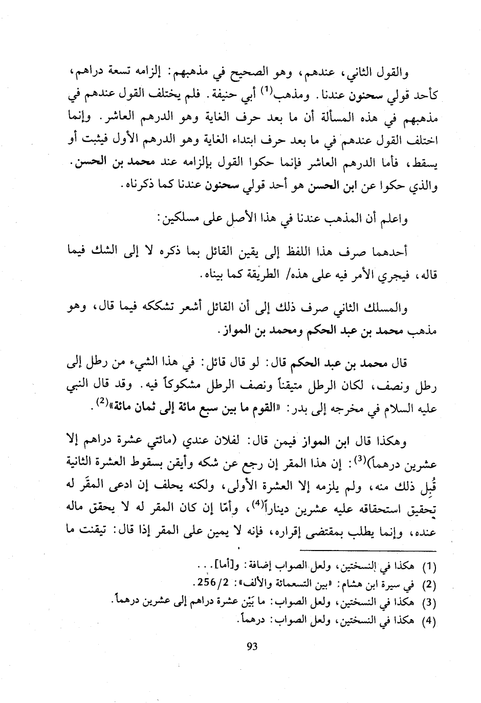 قال محمَّد بن عبد الحكم قال: لو قال قائل: في هذا الشيء من رطل إلى رطل ونصف، لكان الرطل متيقنأونصف الرطل مشكوكًا فيه. وقد قال النبي عليه السلام في مخرجه إلى بدر: "القوم ما بين سبع مائة إلى ثمان مائة" (¬2).