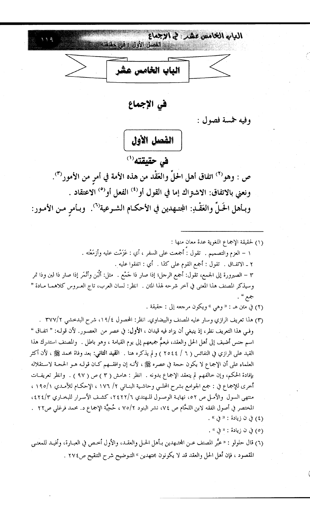 (¬6) قال حلولو: ((عبَّر المصنف عن المجتهدين بأهل الحل والعقد، والأول أخص في العبارة، وأفيد للمعنى المقصود، فإن أهل الحل والعقد قد لا يكونون مجتهدين)) التوضيح شرح التنقيح ص274.