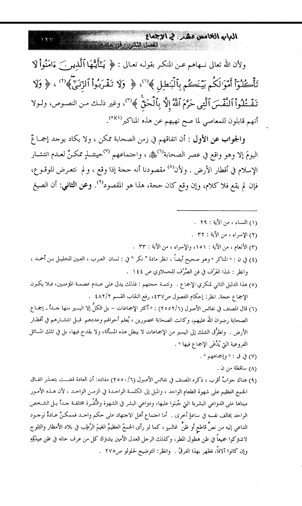 (¬5) هذا الدليل الثاني لمنكري الإجماع. وتتمة حجتهم: فذلك يدل على عدم عصمة المؤمنين، فلا يكون الإجماع حجة. انظر: إحكام الفصول ص437، رفع النقاب القسم 2/482.