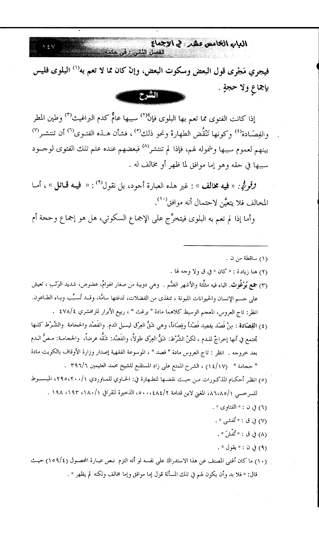(¬5) انظر أحكام المذكورات من حيث نقضها للطهارة في: الحاوي للماوردي 1/200، 295، المبسوط للسرخسي 1/85، 86، المغني لابن قدامة 2/484، 500، الذخيرة للقرافي 1/180، 193، 198.