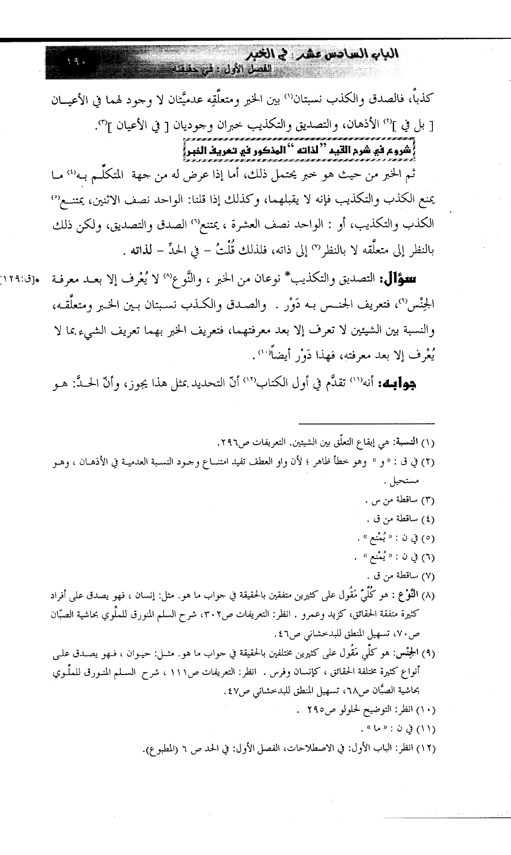 (¬12) انظر: الباب الأول: في الاصطلاحات، الفصل الأول: في الحد ص 6 (المطبوع) .