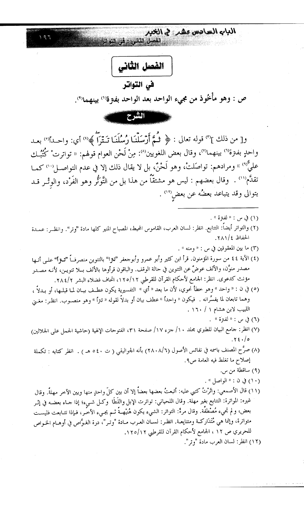 (¬2) والتواتر أيضاً: التتابع. انظر: لسان العرب، القاموس المحيط، المصباح المنير كلها مادة "وتر". وانظر: عمدة الحفاظ 4/281.