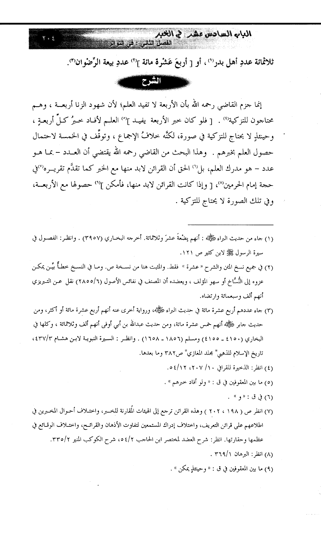 (¬2) في جميع نسخ المتن والشرح ((عشرة)) فقط. والمثبت هنا من نسخة ص. وما في النسخ خطأٌ بيِّن يمكن عزوه إلى النُّسَّاخ أو سهو المؤلف، ويعضده أن المصنف في نفائس الأصول (6/2855) نقل عن التبريزي أنهم ألف وسبعمائة وارتضاه.