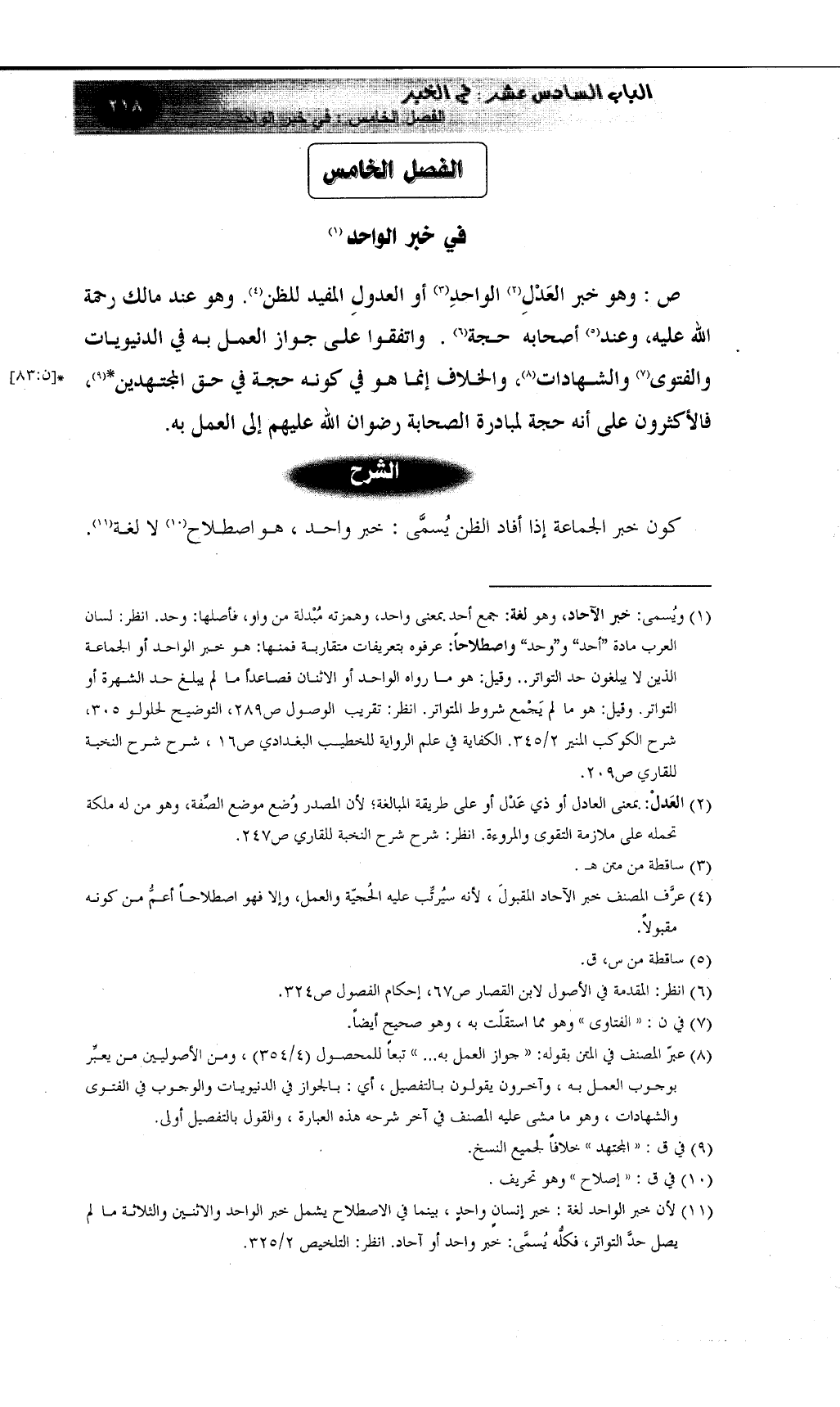 (¬11) لأن خبر الواحد لغة: خبر إنسانٍ واحدٍ، بينما في الاصطلاح يشمل خبر الواحد والاثنين والثلاثة ما لم يصل حدَّ التواتر، فكلُّه يُسمَّى: خبر واحد أو آحاد. انظر: التلخيص 2/325.