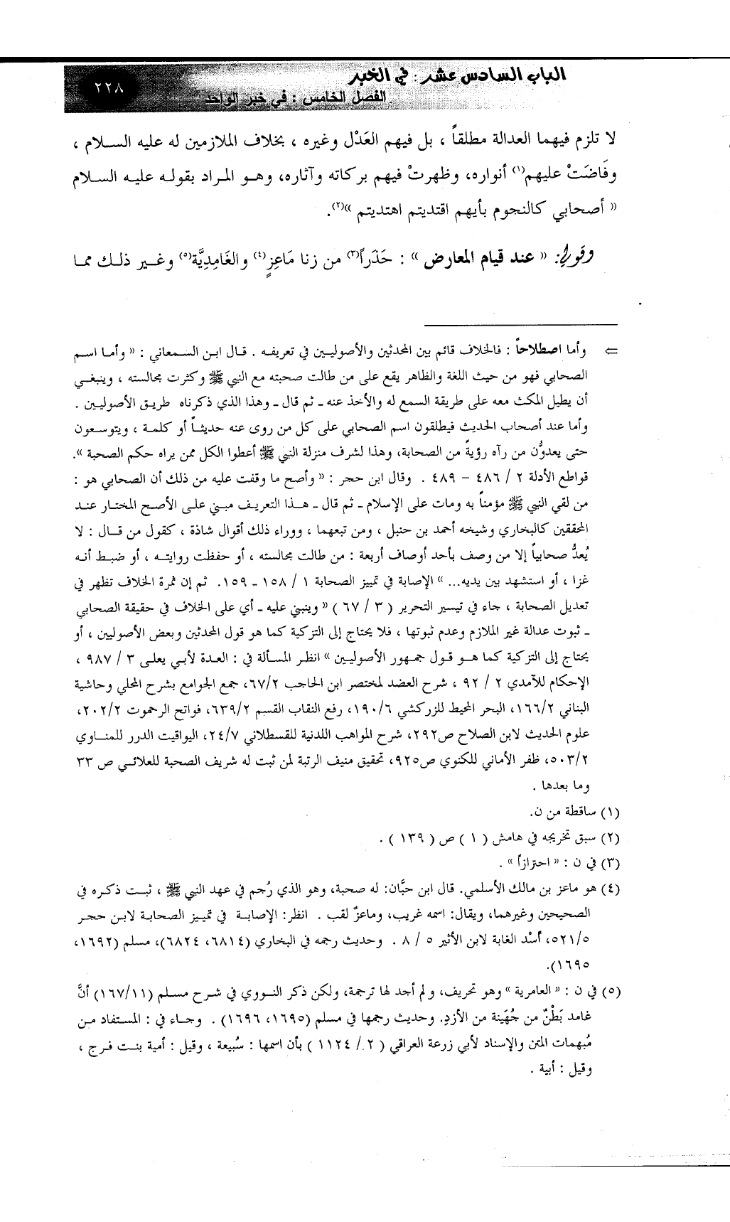 لا تلزم فيهما العدالة مطلقاً، بل فيهم العَدْل وغيره، بخلاف الملازمين له عليه السلام، وفَاضَتْ عليهم (¬1) أنواره، وظهرتْ فيهم بركاته وآثاره، وهو المراد بقوله عليه السلام "أصحابي كالنجوم بأيهم اقتديتم اهتديتم" (¬2) .