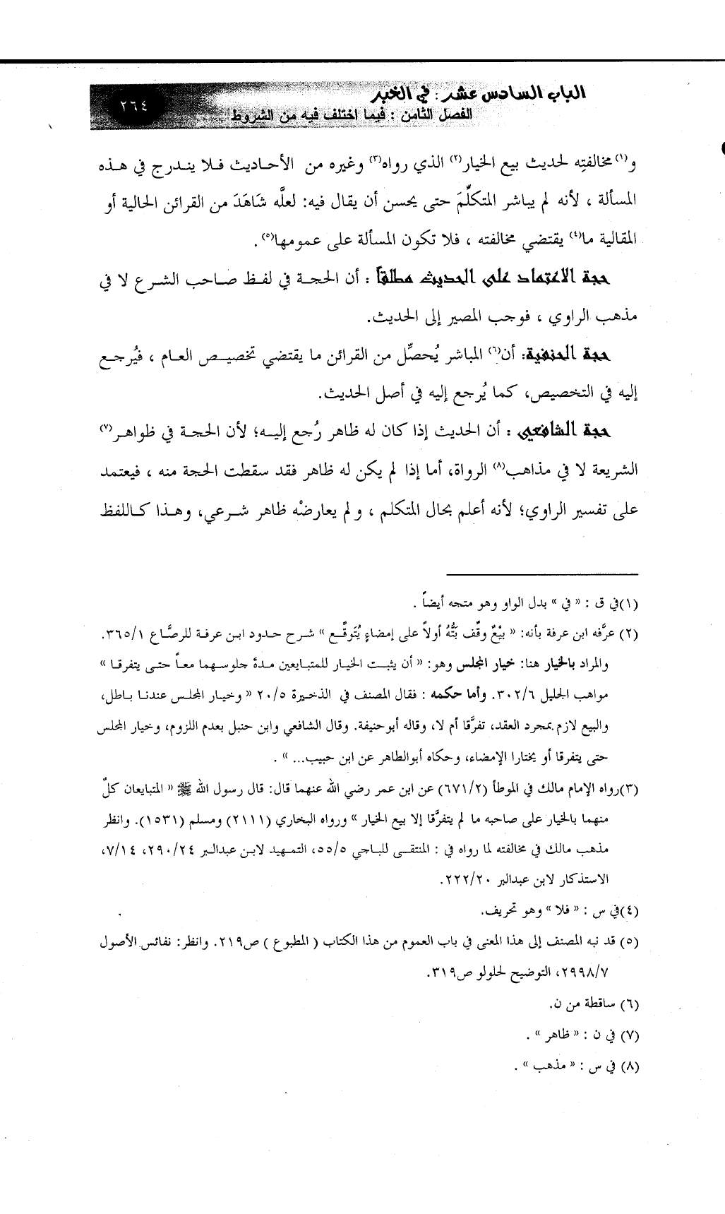 (¬3) رواه الإمام مالك في الموطأ (2/671) عن ابن عمر رضي الله عنهما قال: قال رسول الله صلى الله عليه وسلم "المتبايعان كلٌ منهما بالخيار على صاحبه ما لم يتفرَّقا إلا بيع الخيار" ورواه البخاري (2111) ومسلم (1531) . وانظر مذهب مالك في مخالفته لما رواه في المنتقى للباجي 5/55، التمهيد لابن عبد البر 24/290، 14/7، الاستذكار لابن عبد البر 20/222.