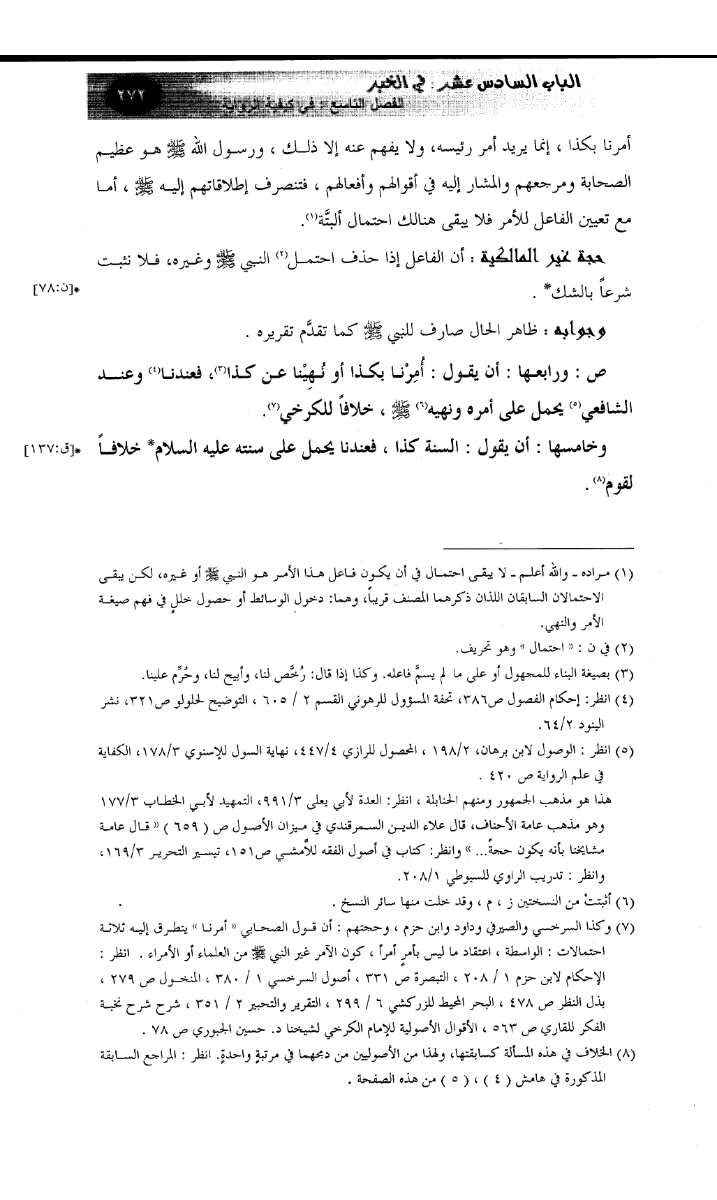 (¬5) انظر: الوصول لابن برهان، 2/198، المحصول للرازي 4/447، نهاية السول للإسنوي 3/178، الكفاية في علم الرواية ص 420.
