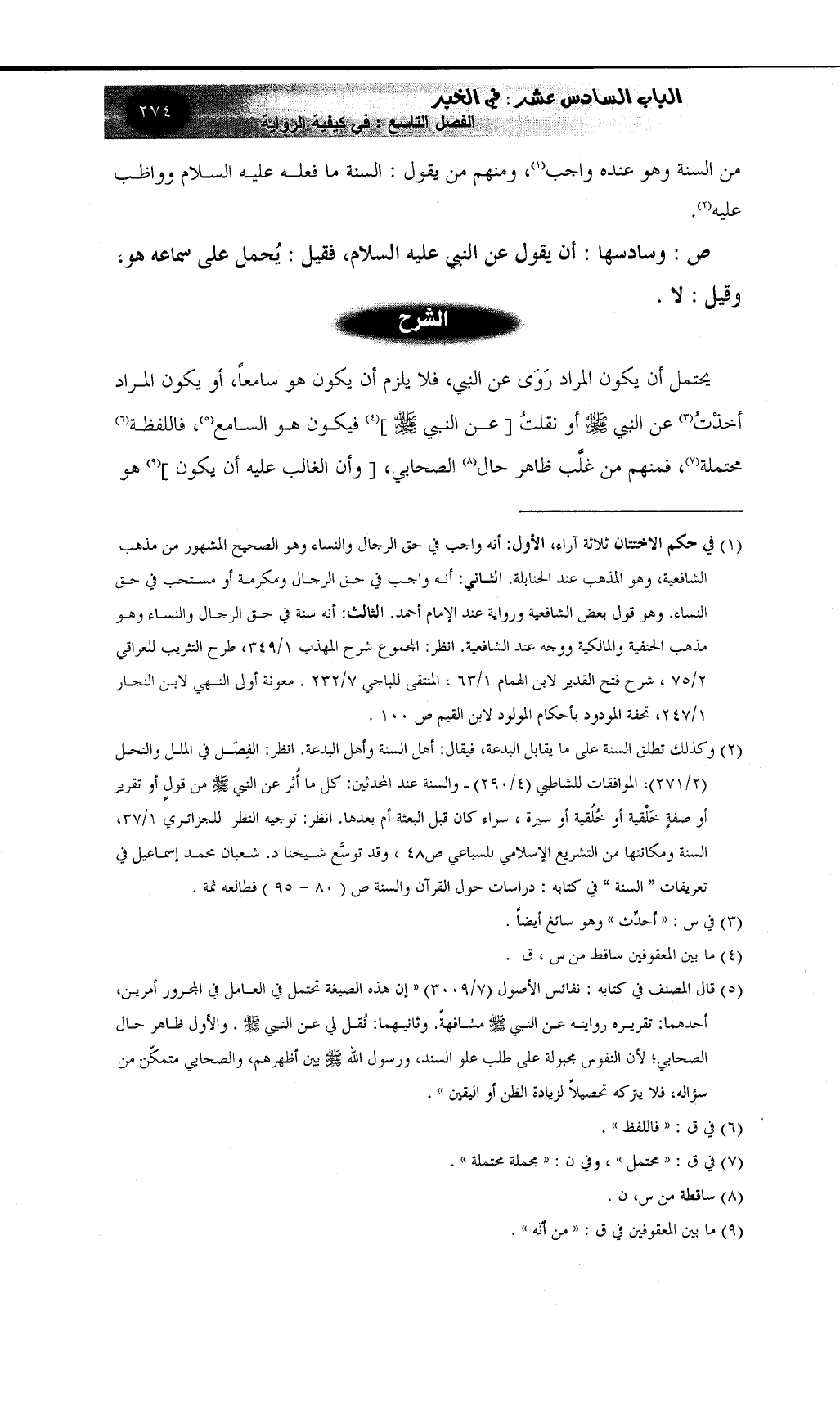 (¬2) وكذلك تطلق السنة على ما يقابل البدعة، فيقال: أهل السنة وأهل البدعة. انظر: الفِصَل في الملل والنحل (2/271) ، الموافقات للشاطبي (4/290) ـ والسنة عند المحدثين: كل ما أُثر عن النبي صلى الله عليه وسلم من قولٍ أو تقرير أو صفةٍ خَلْقية أو خُلُقية أو سيرة، سواء كان قبل البعثة أم بعدها. انظر: توجيه النظر للجزائري 1/37، السنة ومكانتها من التشريع الإسلامي للسباعي ص48، وقد توسَّع شيخنا د. شعبان محمد إسماعيل في تعريفات " السنة " في كتابه: دراسات حول القرآن والسنة ص (80 - 95) فطالعه ثمة.