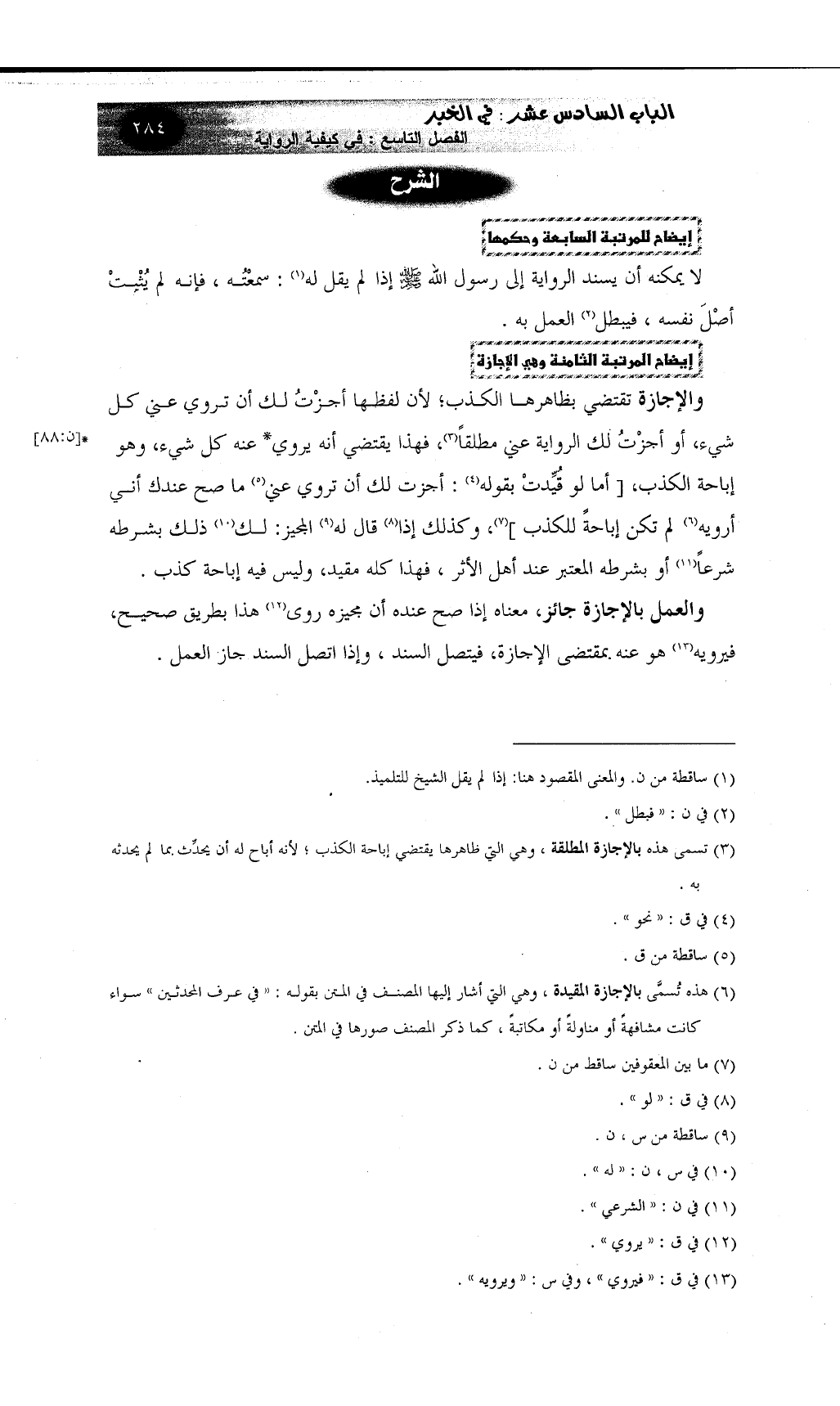 (¬3) تسمى هذه بالإجازة المطلقة، وهي التي ظاهرها يقتضي إباحة الكذب؛ لأنه أباح له أن يحدِّث بما لم يحدثه به.