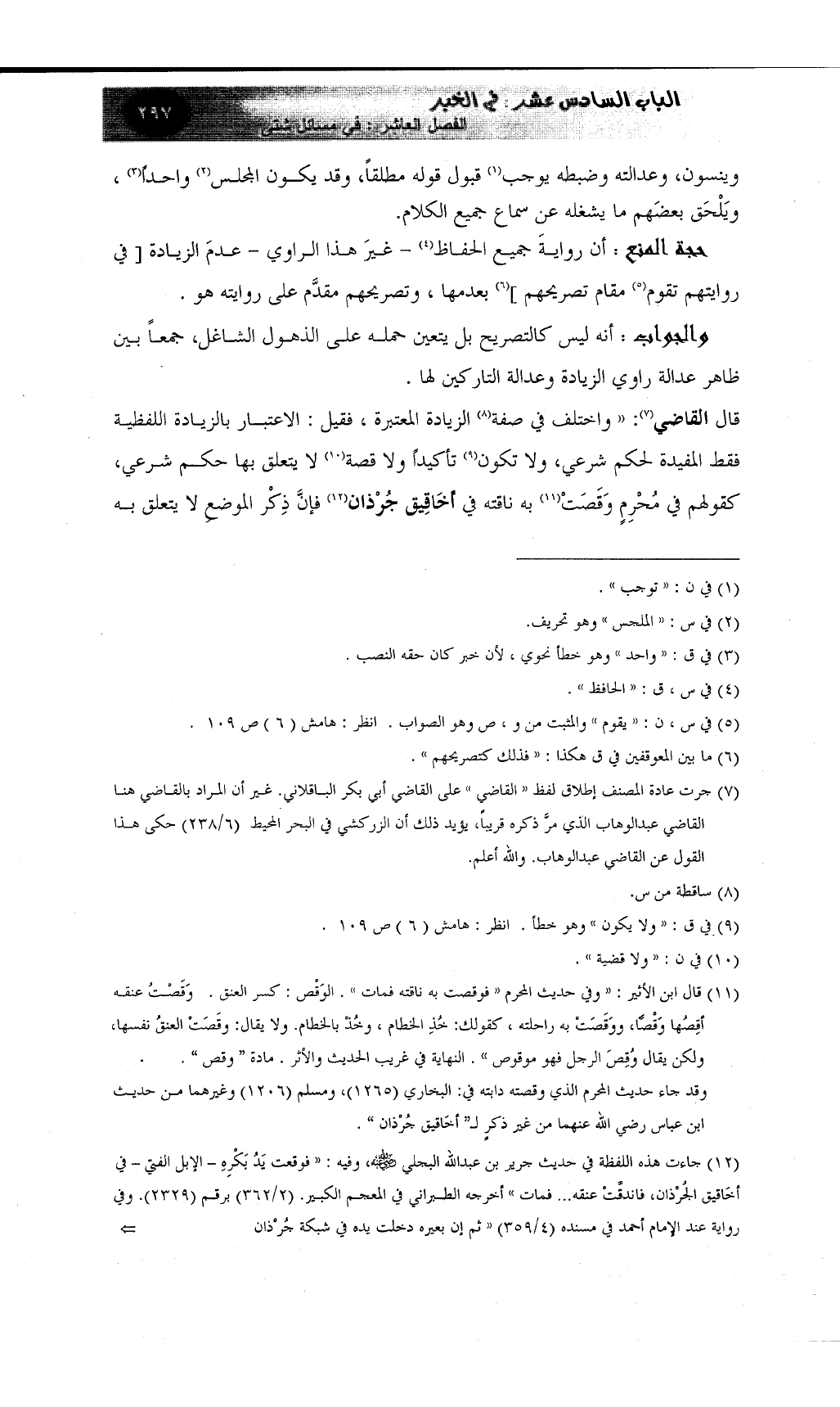 قال القاضي (¬7) : ((واختلف في صفة (¬8) الزيادة المعتبرة، فقيل: الاعتبار بالزيادة اللفظية فقط المفيدة لحكم شرعي، ولا تكون (¬9) تأكيداً ولا قصة (¬10) لا يتعلق بها حكم شرعي، كقولهم في مُحْرِمٍ وَقَصَتْ (¬11)