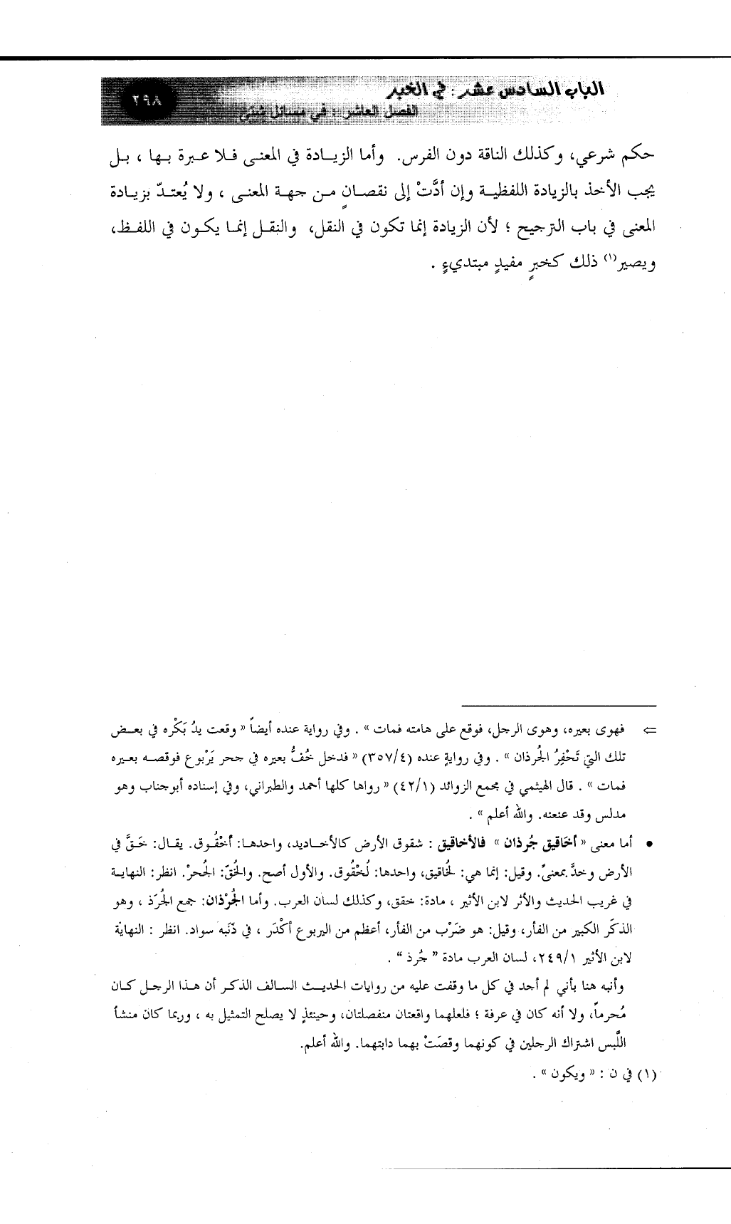 حكم شرعي، وكذلك الناقة دون الفرس. وأما الزيادة في المعنى فلا عبرة بها، بل يجب الأخذ بالزيادة اللفظية وإن أدَّتْ إلى نقصانٍ من جهة المعنى، ولا يُعتدّ بزيادة المعنى في باب الترجيح؛ لأن الزيادة إنما تكون في النقل، والنقل إنما يكون في اللفظ، ويصير (¬1)