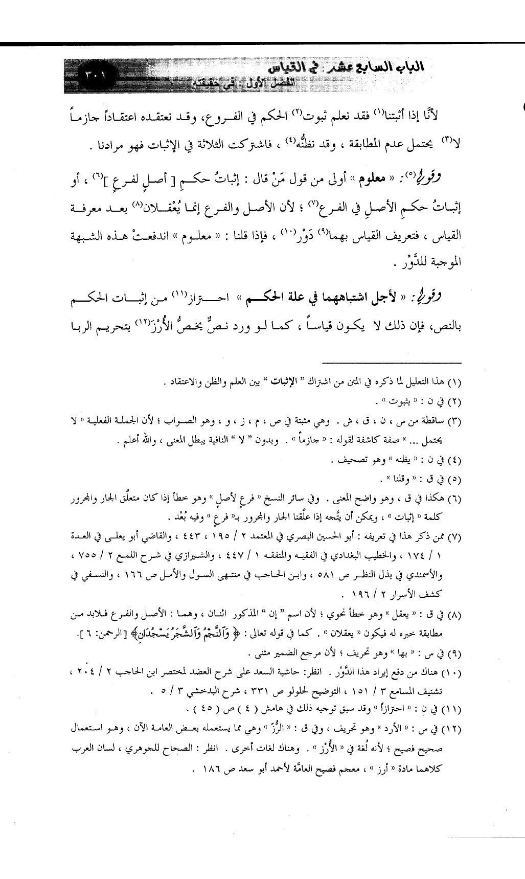 وقولي: ((لأجل اشتباههما في علة الحكم)) احتراز (¬11) من إثبات الحكم بالنص، فإن ذلك لا يكون قياساً، كما لو ورد نصٌّ يخصُّ الأُرْزَ (¬12) بتحريم الربا