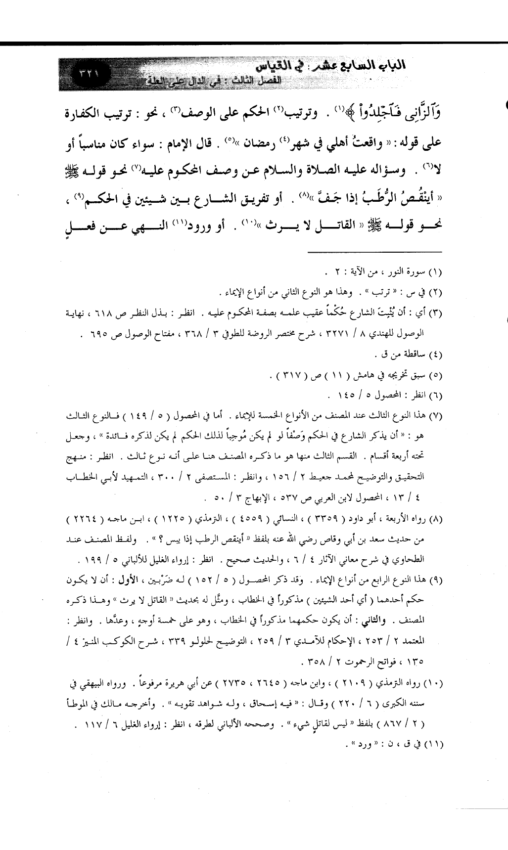 على قوله: ((واقعتُ أهلي في شهر (¬4) رمضان)) (¬5) . قال الإمام: سواء كان مناسباً أو لا (¬6) . وسؤاله عليه الصلاة والسلام عن وصف المحكوم عليه (¬7)