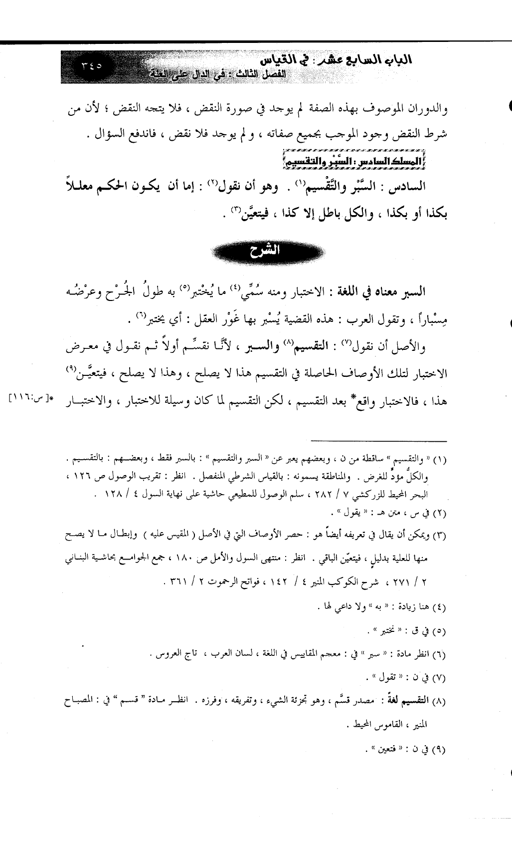 (¬1) والتقسيم)) ساقطة من ن، وبعضهم يعبر عن ((السبر والتقسيم)) : بالسبر فقط، وبعضهم: بالتقسيم. والكلُّ مؤدٍّ للغرض. والمناطقة يسمونه: بالقياس الشرطي المنفصل. انظر: تقريب الوصول ص 126، البحر المحيط للزركشي 7 / 282، سلم الوصول للمطيعي حاشية على نهاية السول 4 / 128.