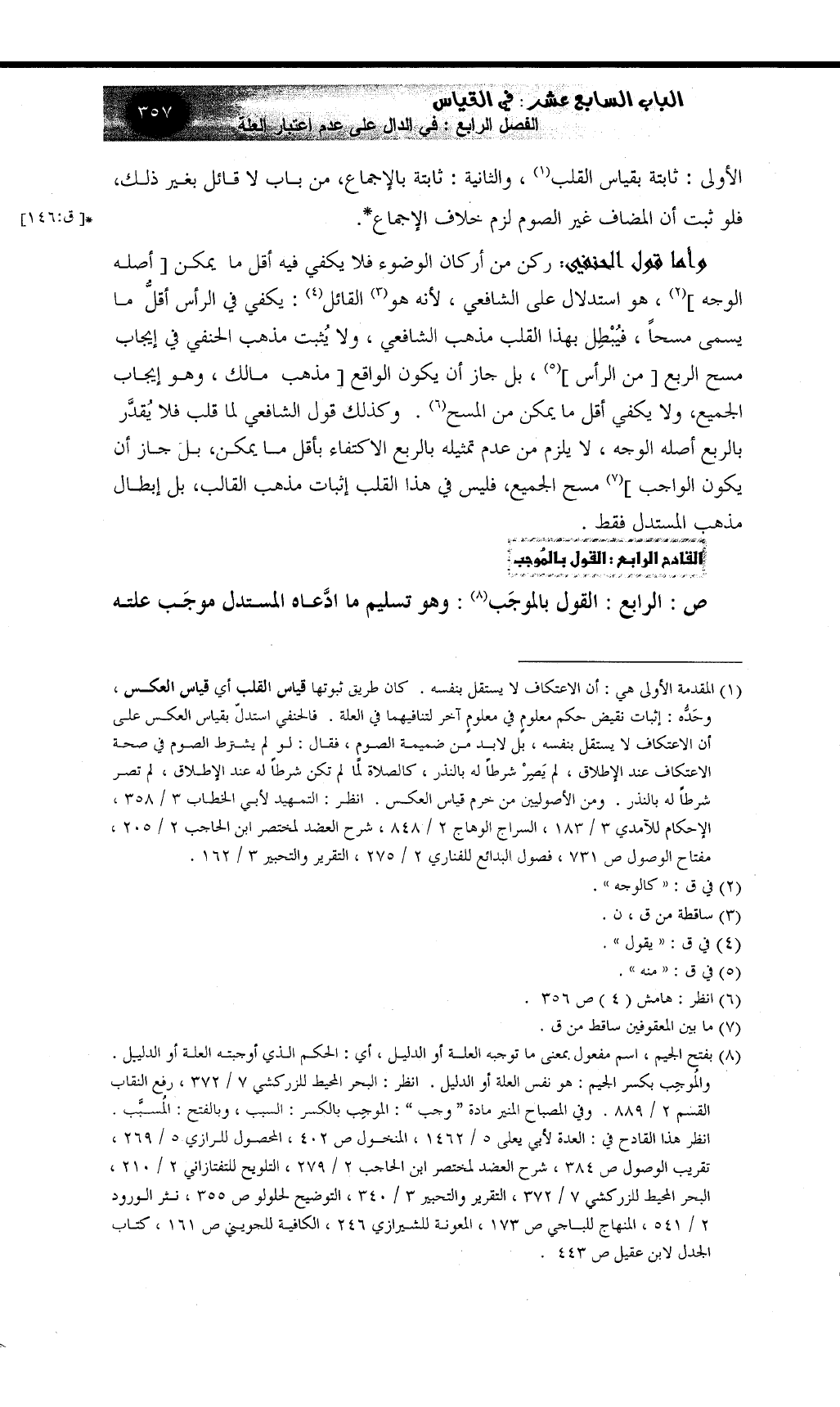 (¬8) بفتح الجيم، اسم مفعول بمعنى ما توجبه العلة أو الدليل، أي: الحكم الذي أوجبته العلة أو الدليل. والمُوجِب بكسر الجيم: هو نفس العلة أو الدليل. انظر: البحر المحيط للزركشي 7 / 372، رفع النقاب القسم 2 / 889. وفي المصباح المنير مادة " وجب ": الموجِب بالكسر: السبب، وبالفتح: المُسبَّب. انظر هذا القادح في: العدة لأبي يعلى 5 / 1462، المنخول ص 402، المحصول للرازي 5 / 269، تقريب الوصول ص 384، شرح العضد لمختصر ابن الحاجب 2 / 279، التلويح للتفتازاني 2 / 210، البحر المحيط للزركشي 7 / 372، التقرير والتحبير 3 / 340، التوضيح لحلولو ص 355، نثر الورود