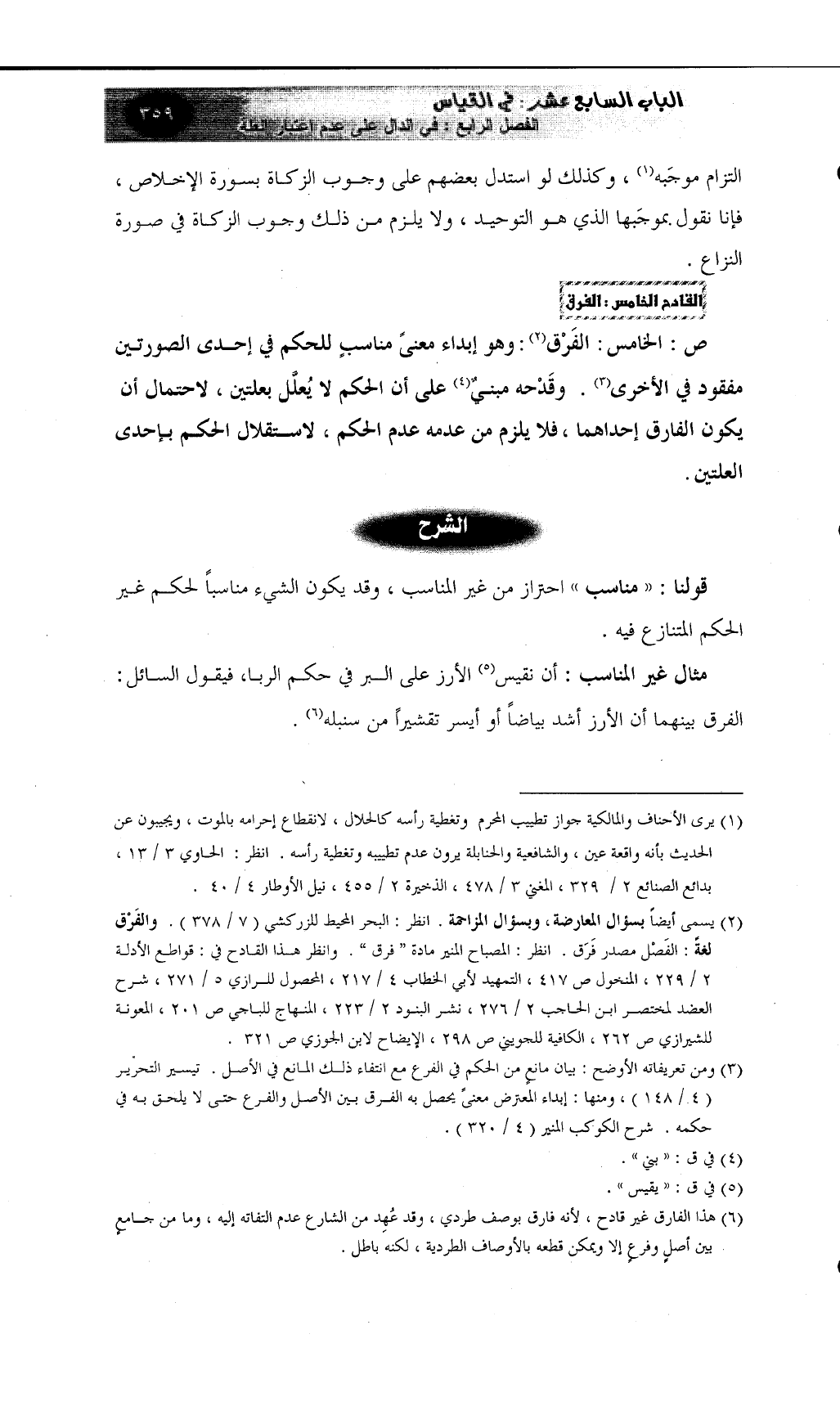 ص: الخامس: الفَرْق (¬2) : وهو إبداء معنىً مناسبٍ للحكم في إحدى الصورتين مفقود في الأخرى (¬3) .