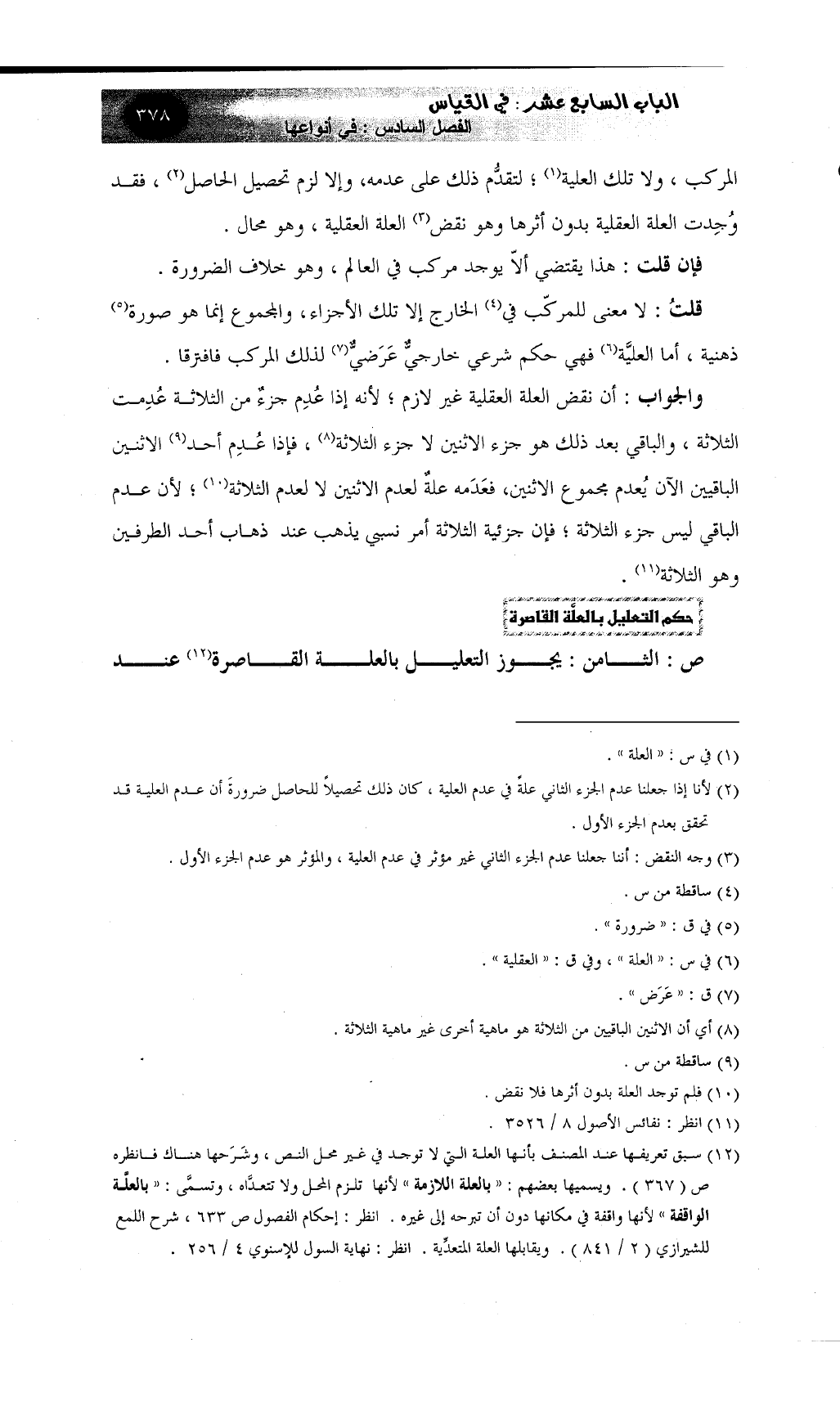 ص: الثامن: يجوز التعليل بالعلة القاصرة (¬12) عند