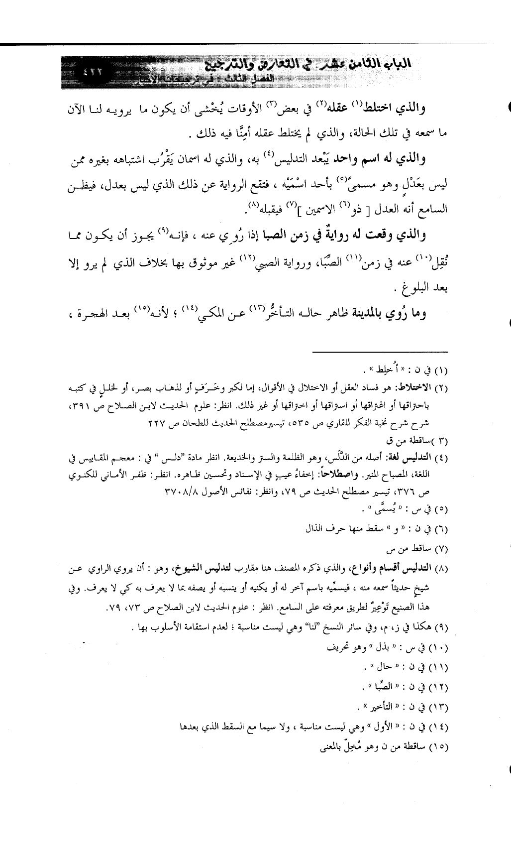 (¬2) الاختلاط: هو فساد العقل أو الاختلال في الأقوال، إما لكبر وخَرَفٍ أو لذهاب بصر، أو لخللٍ في كتبه باحتراقها أو اغتراقها أو استراقها أو اختراقها أو غير ذلك. انظر: علوم الحديث لابن الصلاح ص 391، شرح شرح نخبة الفكر للقاري ص 535، تيسيرمصطلح الحديث للطحان ص 227
