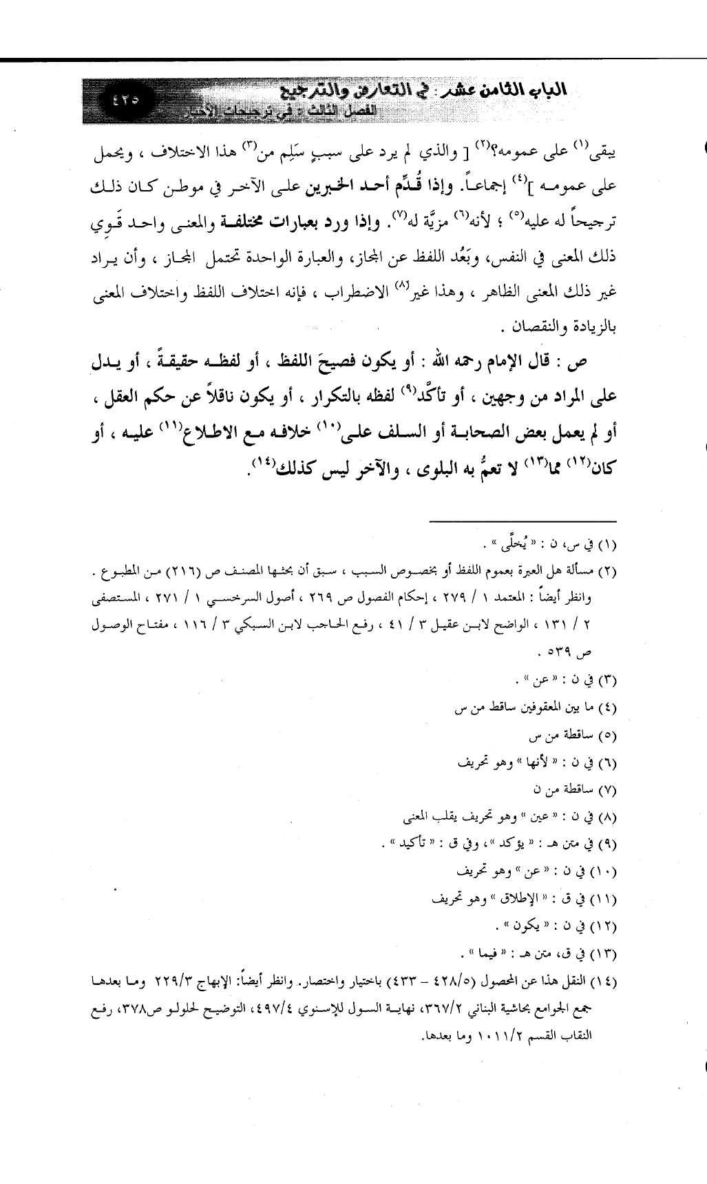 (¬14) النقل هذا عن المحصول (5/428 - 433) باختيار واختصار. وانظر أيضاً: الإبهاج 3/229 وما بعدها جمع الجوامع بحاشية البناني 2/367، نهاية السول للإسنوي 4/497، التوضيح لحلولو ص378، رفع النقاب القسم 2/1011 وما بعدها.