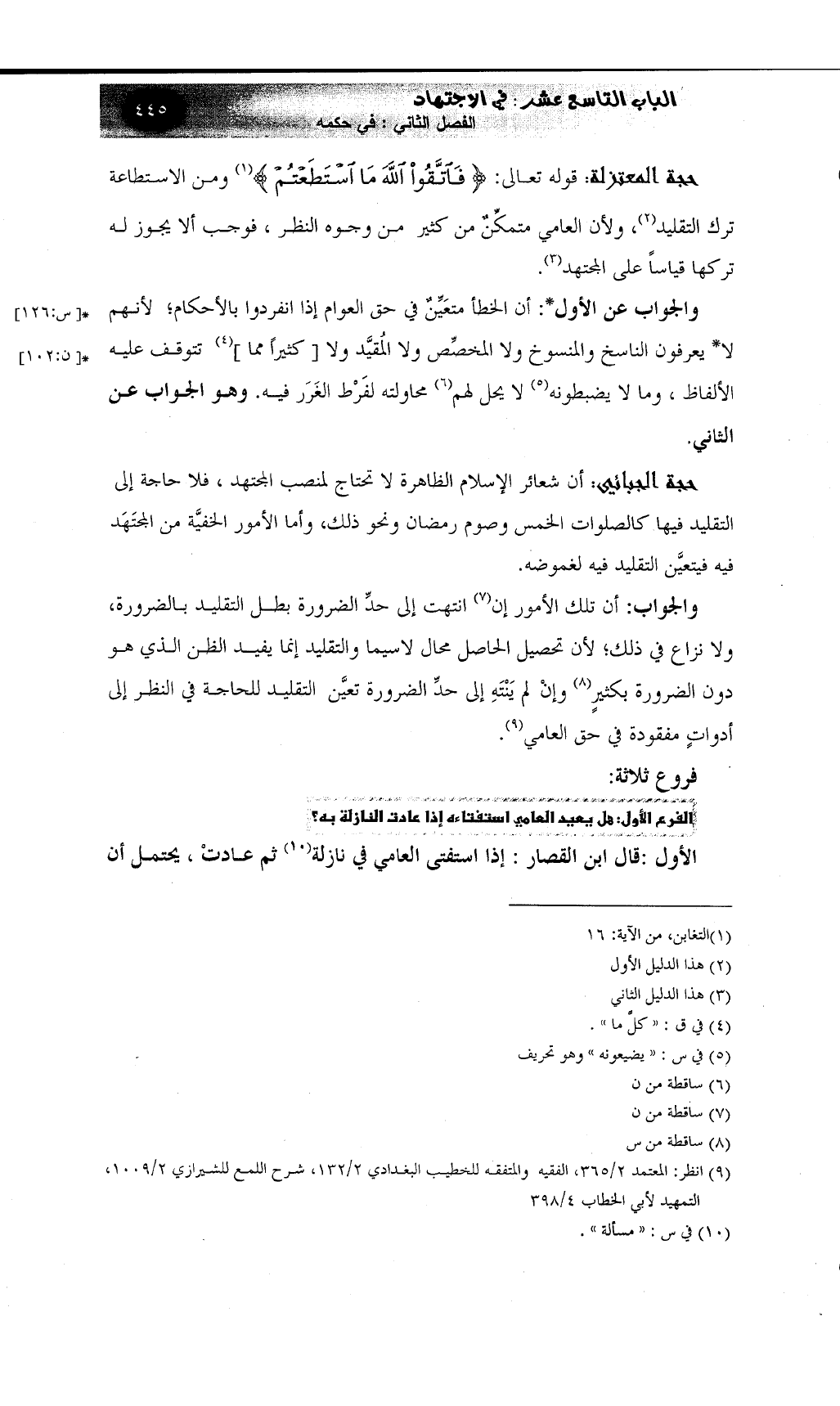 (¬9) انظر: المعتمد 2/365، الفقيه والمتفقه للخطيب البغدادي 2/132، شرح اللمع للشيرازي 2/1009، التمهيد لأبي الخطاب 4/398