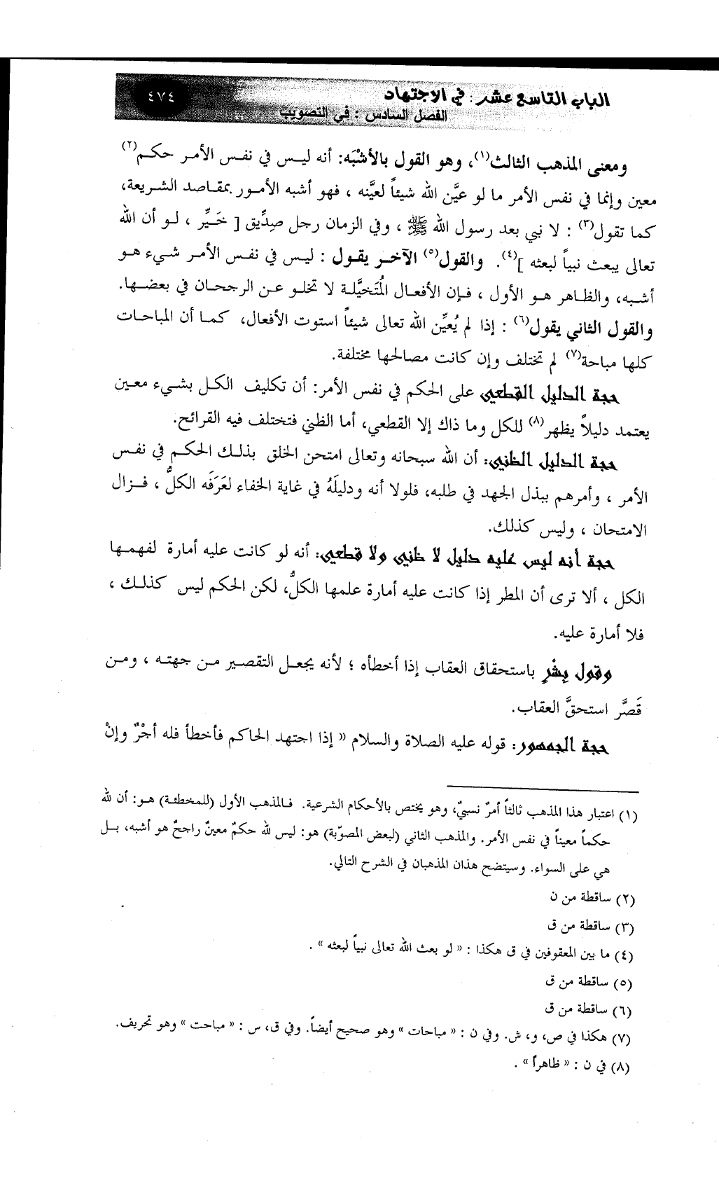 (¬1) اعتبار هذا المذهب ثالثاً أمرٌ نسبيٌ، وهو يختص بالأحكام الشرعية. فالمذهب الأول (للمخطئة) هو: أن لله حكماً معيناً في نفس الأمر. والمذهب الثاني (لبعض المصوّبة) هو: ليس لله حكمٌ معينٌ راجحٌ هو أشبه، بل هي على السواء. وسيتضح هذان المذهبان في الشرح التالي.