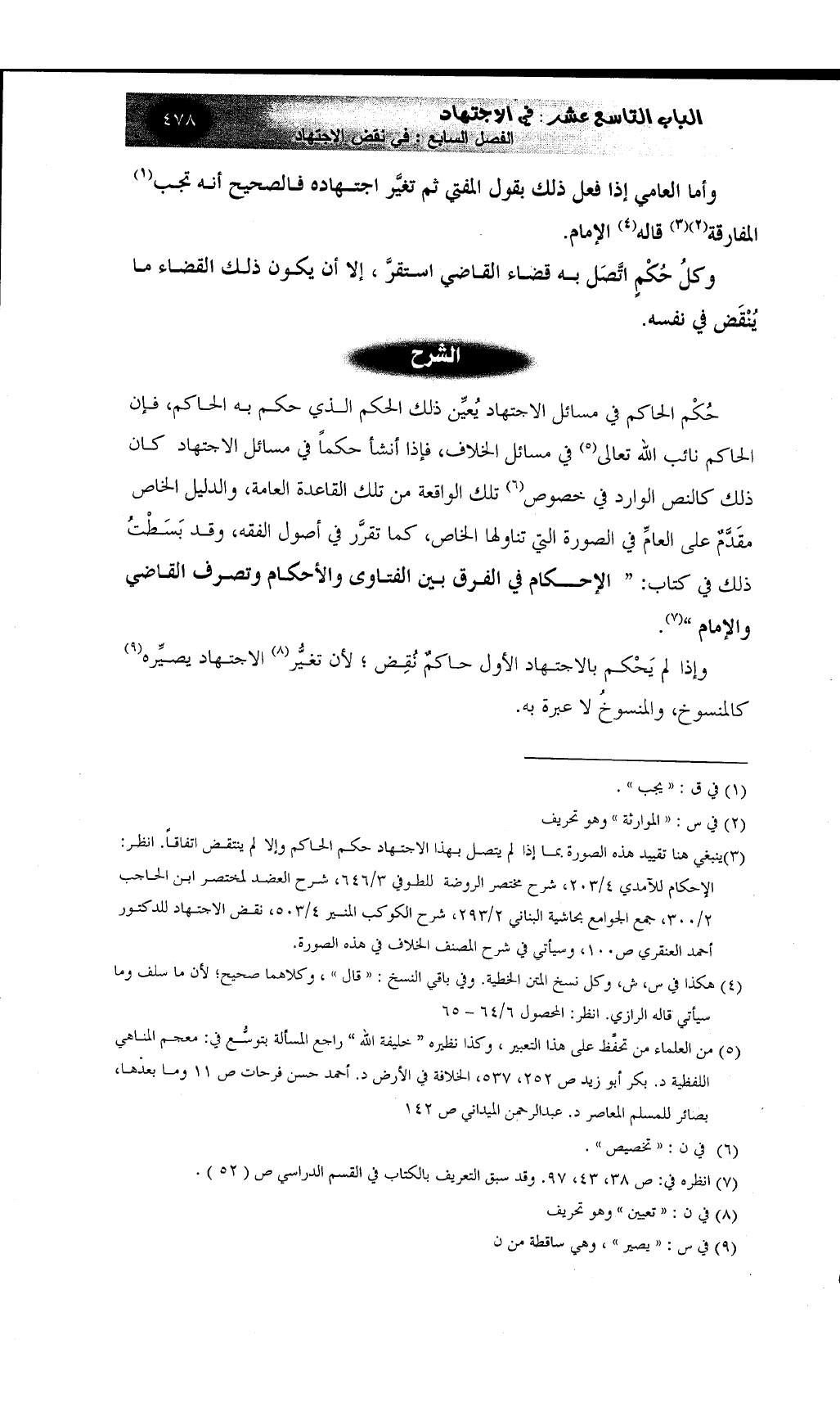 حُكْم الحاكم في مسائل الاجتهاد يُعيِّن ذلك الحكم الذي حكم به الحاكم، فإن الحاكم نائب الله تعالى (¬5) في مسائل الخلاف، فإذا أنشأ حكماً في مسائل الاجتهاد كان ذلك كالنص الوارد في خصوص (¬6) تلك الواقعة من تلك القاعدة العامة، والدليل الخاص مقَدَّمٌ على العامِّ في الصورة التي تناولها الخاص، كما تقرَّر في أصول الفقه، وقد بَسَطْتُ ذلك في كتاب: " الإحكام في الفرق بين الفتاوى والأحكام وتصرف القاضي والإمام " (¬7) .
