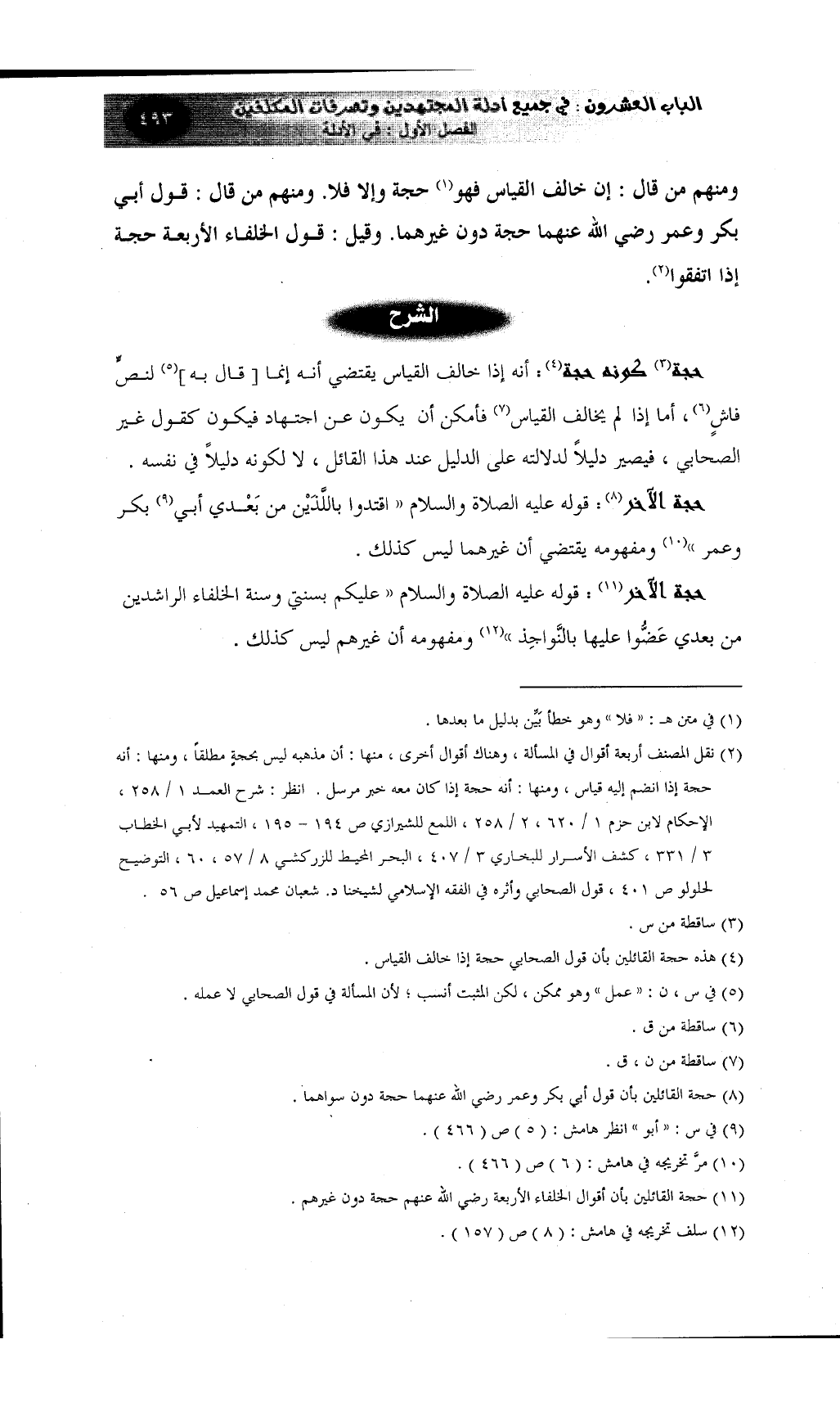 (¬11) حجة القائلين بأن أقوال الخلفاء الأربعة رضي الله عنهم حجة دون غيرهم.
