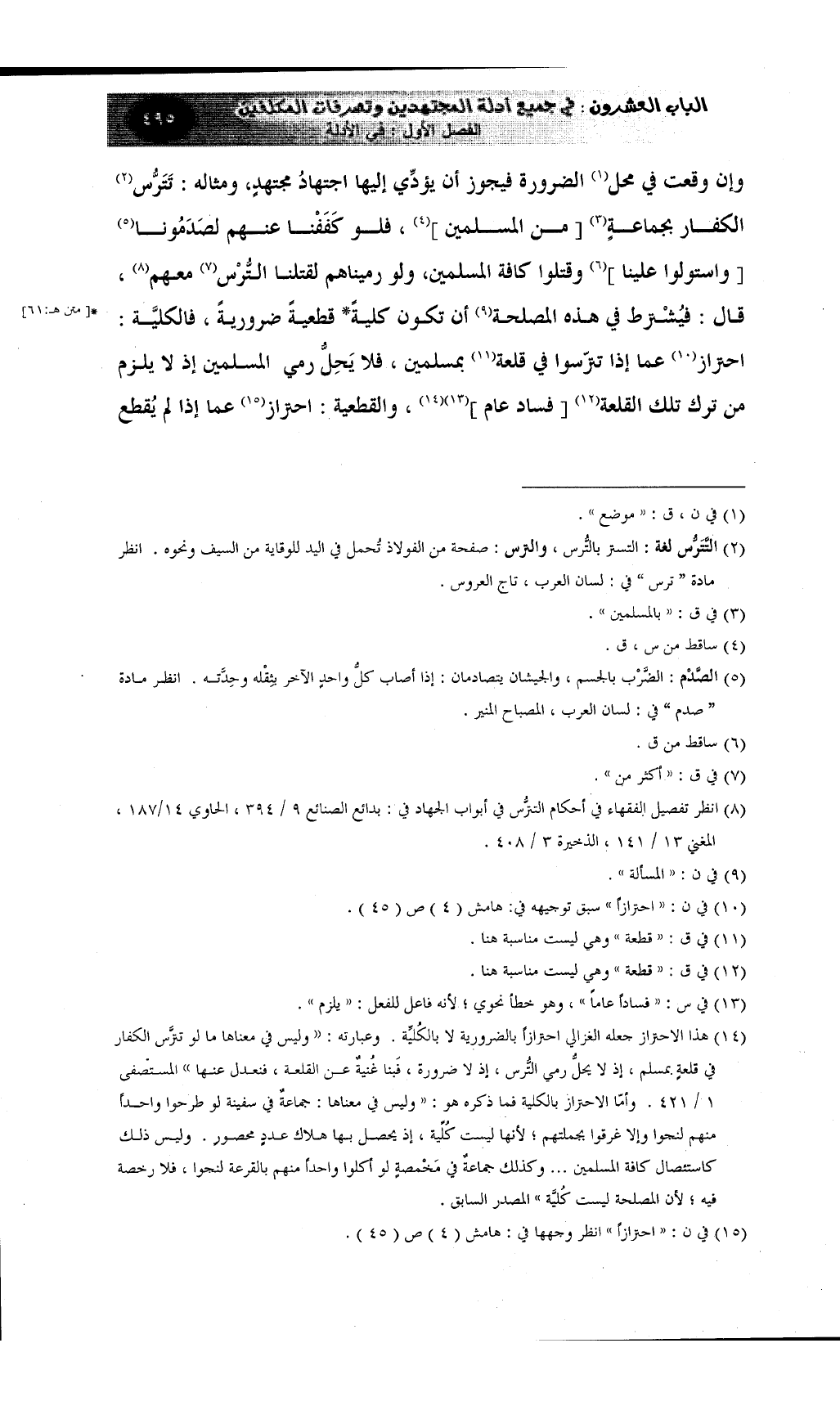 (¬8) انظر تفصيل الفقهاء في أحكام التترُّس في أبواب الجهاد في: بدائع الصنائع 9 / 394، الحاوي 14/187، المغني 13 / 141، الذخيرة 3 / 408.