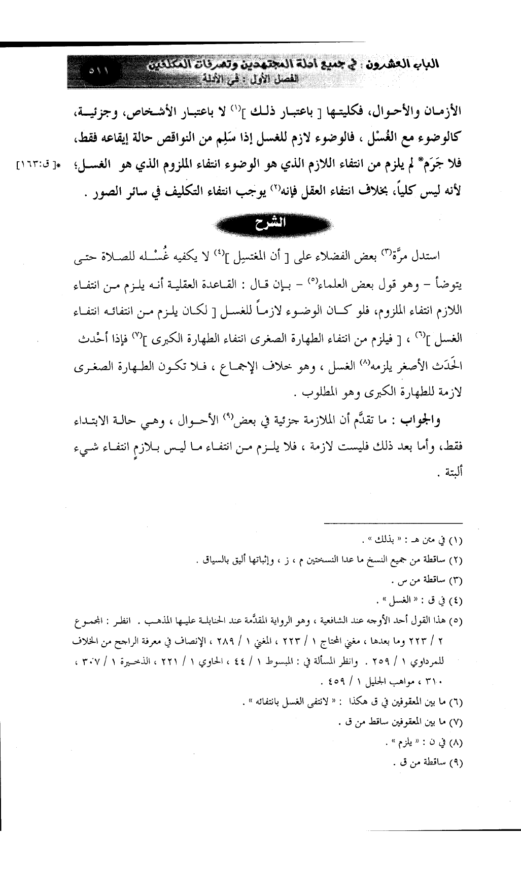 الأزمان والأحوال، فكليتها [باعتبار ذلك] (¬1) لا باعتبار الأشخاص، وجزئية، كالوضوء مع الغُسْل، فالوضوء لازم للغسل إذا سَلِم من النواقص حالة إيقاعه فقط، فلا جَرَم* لم يلزم من انتفاء اللازم الذي هو الوضوء انتفاء الملزوم الذي هو الغسل؛ لأنه ليس كلياً، بخلاف انتفاء العقل فإنه (¬2) يوجب انتفاء التكليف في سائر الصور.