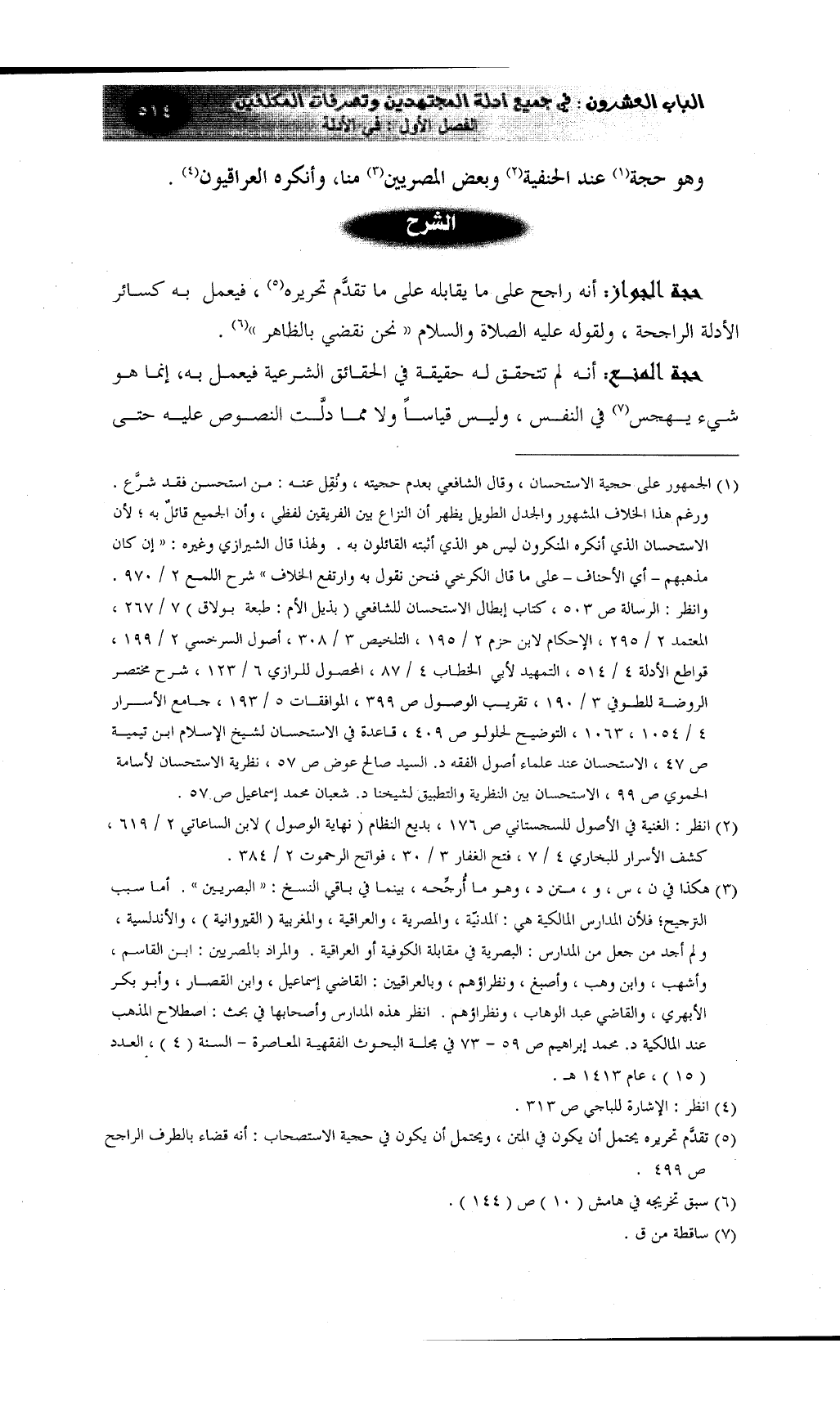 (¬1) الجمهور على حجية الاستحسان، وقال الشافعي بعدم حجيته، ونُقِل عنه: من استحسن فقد شرَّع. ورغم هذا الخلاف المشهور والجدل الطويل يظهر أن النزاع بين الفريقين لفظي، وأن الجميع قائلٌ به؛ لأن الاستحسان الذي أنكره المنكرون ليس هو الذي أثبته القائلون به. ولهذا قال الشيرازي وغيره: ((إن كان مذهبهم - أي الأحناف - على ما قال الكرخي فنحن نقول به وارتفع الخلاف)) شرح اللمع 2 / 970. وانظر: الرسالة ص 503، كتاب إبطال الاستحسان للشافعي (بذيل الأم: طبعة بولاق) 7 / 267، المعتمد 2 / 295، الإحكام لابن حزم 2 / 195، التلخيص 3 / 308، أصول السرخسي 2 / 199، قواطع الأدلة 4 / 514، التمهيد لأبي الخطاب 4 / 87، المحصول للرازي 6 / 123، شرح مختصر الروضة للطوفي 3 / 190، تقريب الوصول ص 399، الموافقات 5 / 193، جامع الأسرار