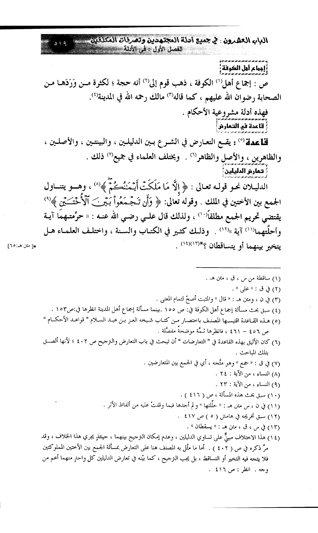 (¬6) كان الأليق بهذه القاعدة في " التعارضات " أن تبحث في باب التعارض والترجيح ص 402؛ لأنها ألصق بتلك المباحث.