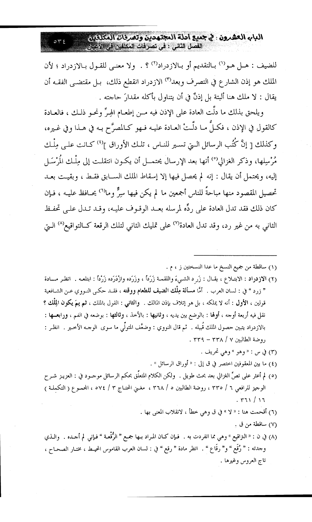 (¬5) لم أعثر على نصِّ الغزالي بعد بحث طويل. ولكن الكلام المتعلِّق بحكم الرسائل موجود في: العزيز شرح الوجيز للرافعي 6 / 335، روضة الطالبين 5 / 368، مغني المحتاج 3 / 574، المجموع (التكملة)