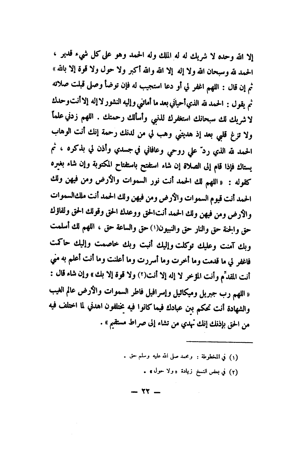 وإن شاء قال: "اللهم رب جبريل وميكائيل وإسرافيل، فاطر السماوات والأرض عالم الغيب والشهادة أنت تحكم بين عبادك فيما كانوا فيه يختلفون، اهدني لما اختلف فيه من الحق بإذنك، إنك تهدي من تشاء إلى صراط مستقيم ".