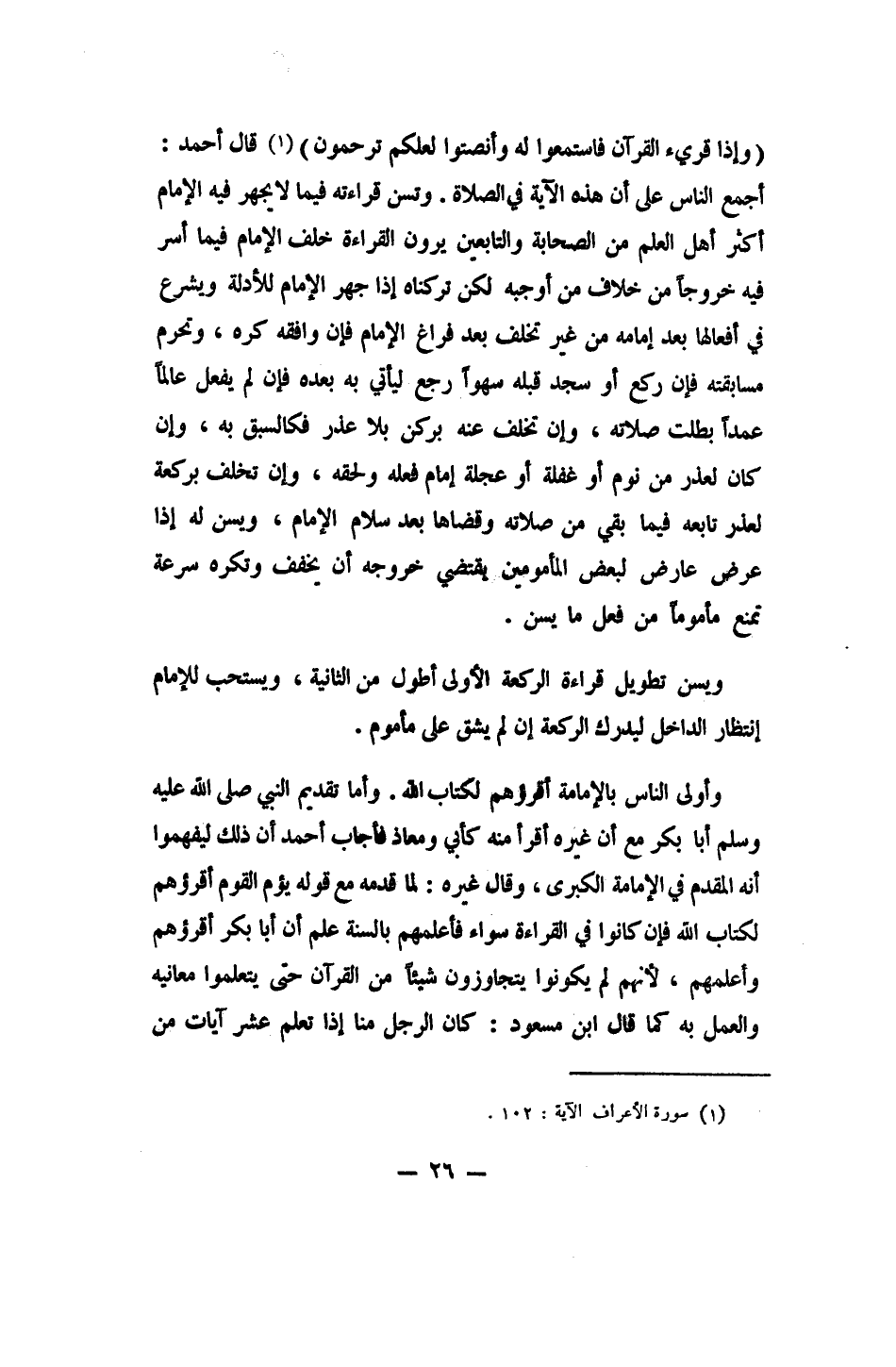 {وَإِذَا قُرِئَ الْقُرْآنُ فَاسْتَمِعُوا لَهُ وَأَنْصِتُوا لَعَلَّكُمْ تُرْحَمُونَ} 1 قال أحمد: أجمع الناس على أن هذه الآية في الصلاة.