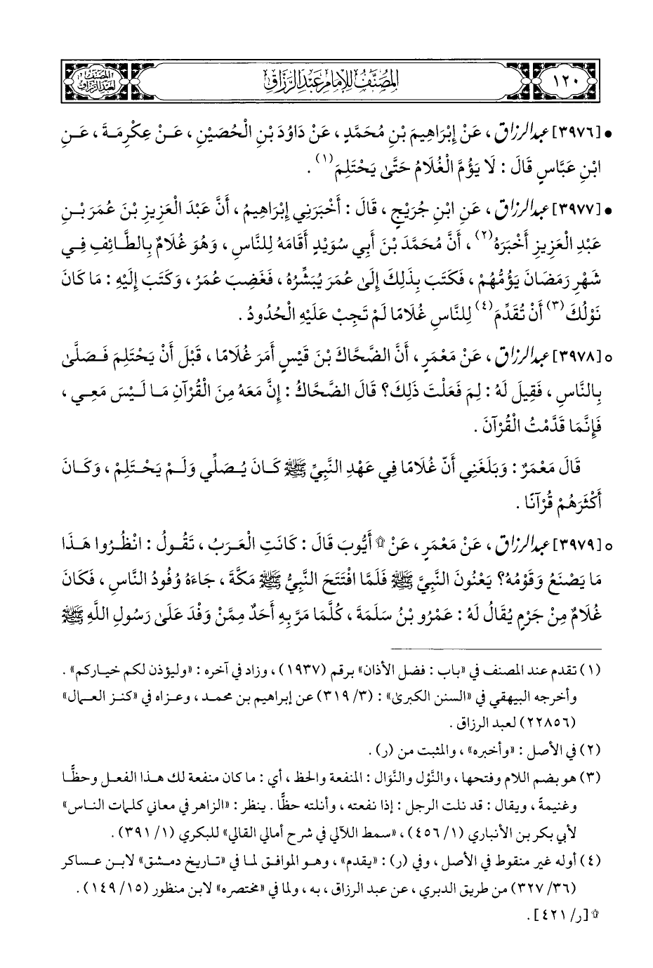 كتاب مصنف عبد الرزاق - ط التأصيل الثانية (اسم الجزء: 3)