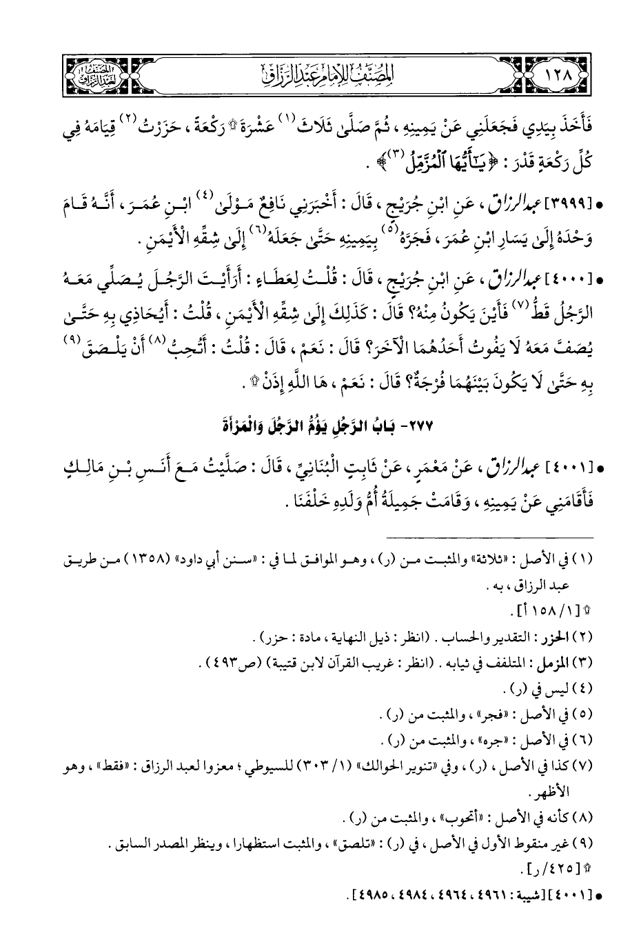 (¬٧) كذا في الأصل، (ر)، وفي "تنوير الحوالك" (١/ ٣٠٣) للسيوطي؛ معزوا لعبد الرزاق: "فقط"، وهو الأظهر.