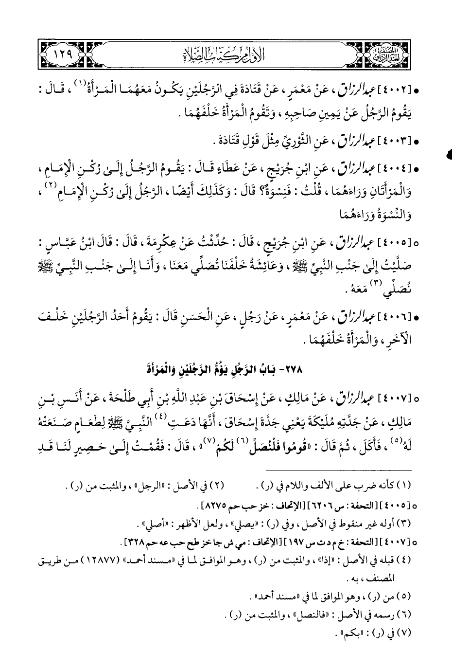 • [٤٠٠٢] عبد الرزاق، عَنْ مَعْمَرٍ، عَنْ قَتَادَةَ فِي الرَّجُلَيْنِ يَكُونُ مَعَهُمَا الْمَرْأَةُ (¬١)، قَالَ: يَقُومُ الرَّجُلُ عَنْ يَمِينِ صَاحِبِهِ، وَتَقُومُ الْمَرْأَةُ خَلْفَهُمَا.