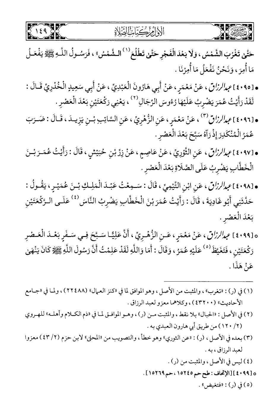 • [٤٠٩٦] عبد الرزاق (¬٣)، عَنْ مَعْمَر، عَنِ الزُّهْرِيِّ، عَنِ السَّائِبِ بْنِ يَزِيدَ، قَالَ: ضَرَبَ عُمَرُ الْمُنْكَدِرَ إِذْ رَآهُ سَبَّحَ بَعْدَ الْعَصْرِ.