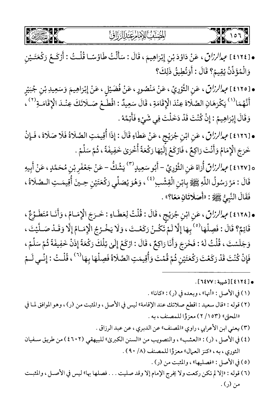 ° [٤١٢٧] عبد الرزاق أُرَاهُ عَنِ الثَّوْريِّ - أَبُو سَعِيدٍ (¬٣) يَشُكُّ - عَنْ جَعْفَرِ بْنِ مُحَمَّدٍ، عَنْ أَبِيهِ قَالَ: مَرَّ رَسُولُ اللَّهِ - صلى الله عليه وسلم - بِابْنِ الْقِشْبِ (¬٤)، وَهُوَ يُصَلِّي رَكْعَتَيْنِ حِينَ أُقِيمَتِ الصَّلَاةُ، فَقَالَ النَّبِيُّ - صلى الله عليه وسلم -: "أَصَلَاتَانِ مَعًا؟ ".