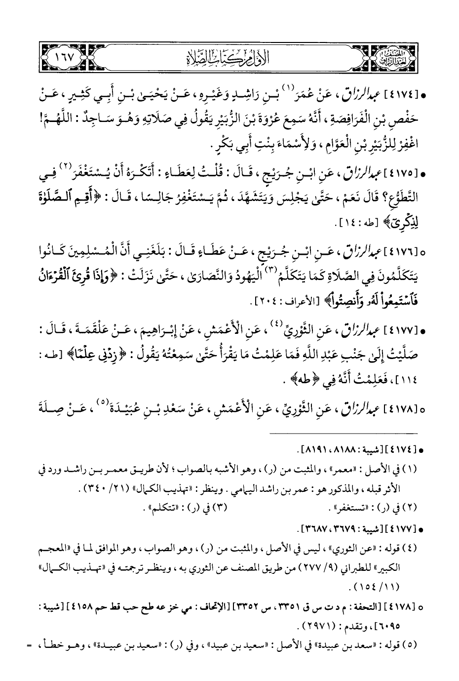 ° [٤١٧٨] عبد الرزاق، عَنِ الثَّوْرِيِّ، عَنِ الْأَعْمَشِ، عَنْ سَعْدِ بْنِ عُبَيْدَةَ (¬٥)، عَنْ صِلَةَ